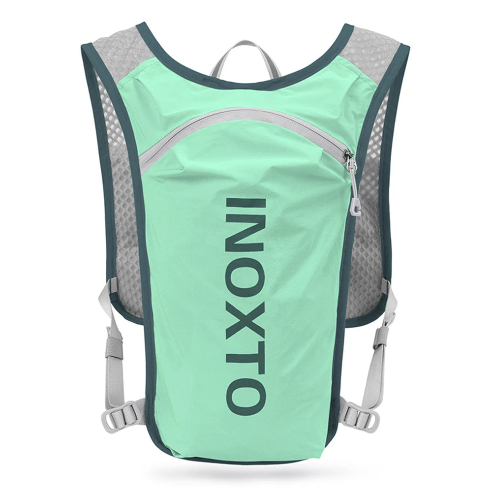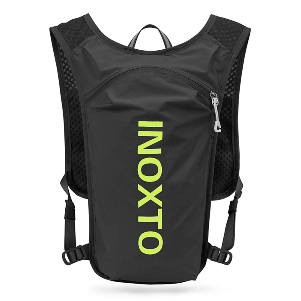 Hydration Compatibility: Inoxto Hydration Backpack features a hydration insulation layer and pipe outlet, making hydration on-the-go a breeze.,Breathable Mesh Straps: Mesh shoulder straps provide maximum breathability, keeping you cool and comfortable.,Reflective Strips for Safety: Equipped with reflective strips, enhancing visibility and improving safety during night outings.,Ultra-lightweight Design: Weighing just 4.9oz, this backpack offers unparalleled portability for your outdoor adventures.,Waterproof Fabric: Crafted from tear-resistant, waterproof nylon, ensuring durability and protection against the elements.