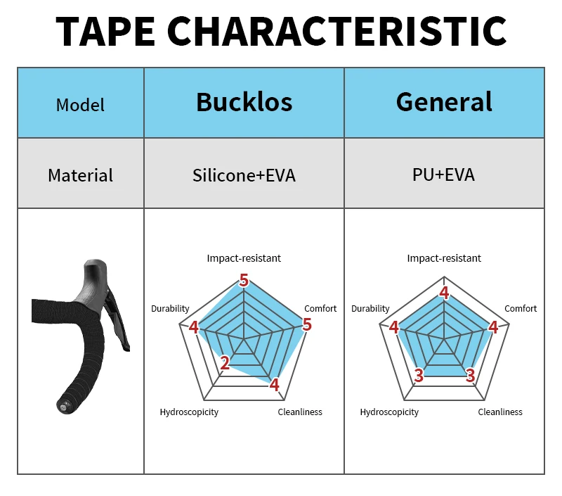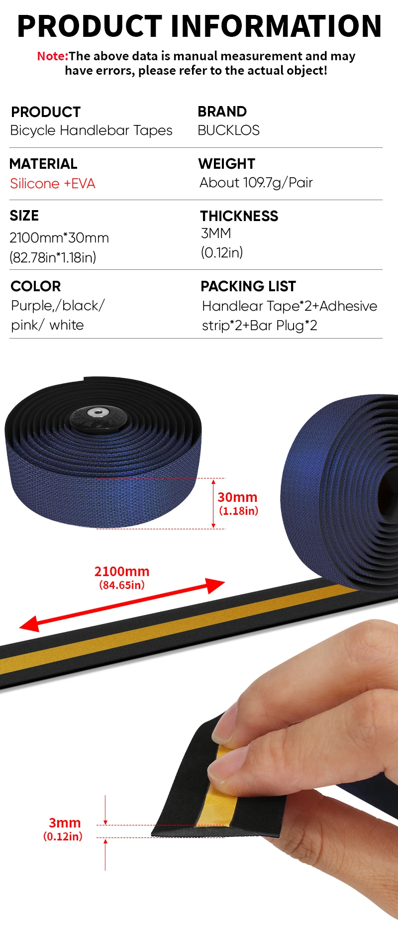 BUCKLOS Silicone EVA Road Bike Handlebar Tape Soft Comfortable Waterproof Non-slip Bicycle Tapes with Adhesive Strip And Bar Plug
