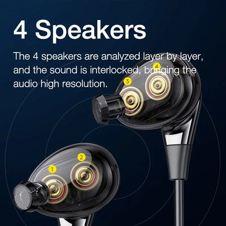 Introducing the EARDECO 4 Speakers Wireless Bluetooth Headphones 5.0 Bass Earphone, the ultimate audio companion for all your music needs. These headphones are designed with the latest Bluetooth 5.0 technology, ensuring a stable and seamless connection to your devices. With 4 powerful speakers, experience immersive and crystal-clear sound quality that will make you feel like you're right in the middle of a live concert. The EARDECO 4 Speakers also have a built-in microphone, allowing you to take calls on-the-go without having to take off your headphones. Simply connect to your phone and answer calls with just one click. These headphones also have a long battery life of up to 10 hours, so you can enjoy your music without worrying about constantly recharging. Whether you're working out, commuting, or just relaxing at home, the EARDECO 4 Speakers Wireless Bluetooth Headphones 5.0 Bass Earphone will elevate your music experience to a whole new level. Don't settle for mediocre sound quality, upgrade to the EARDECO 4 Speakers and immerse yourself in high-quality audio anytime, anywhere.