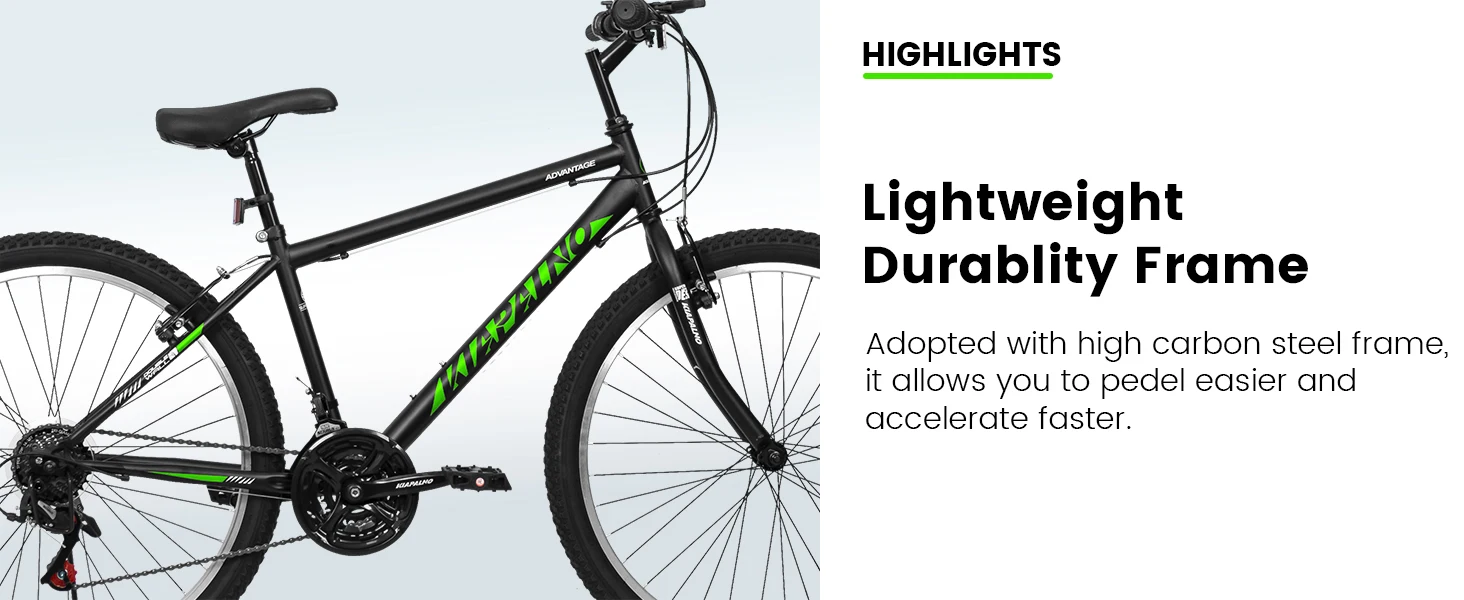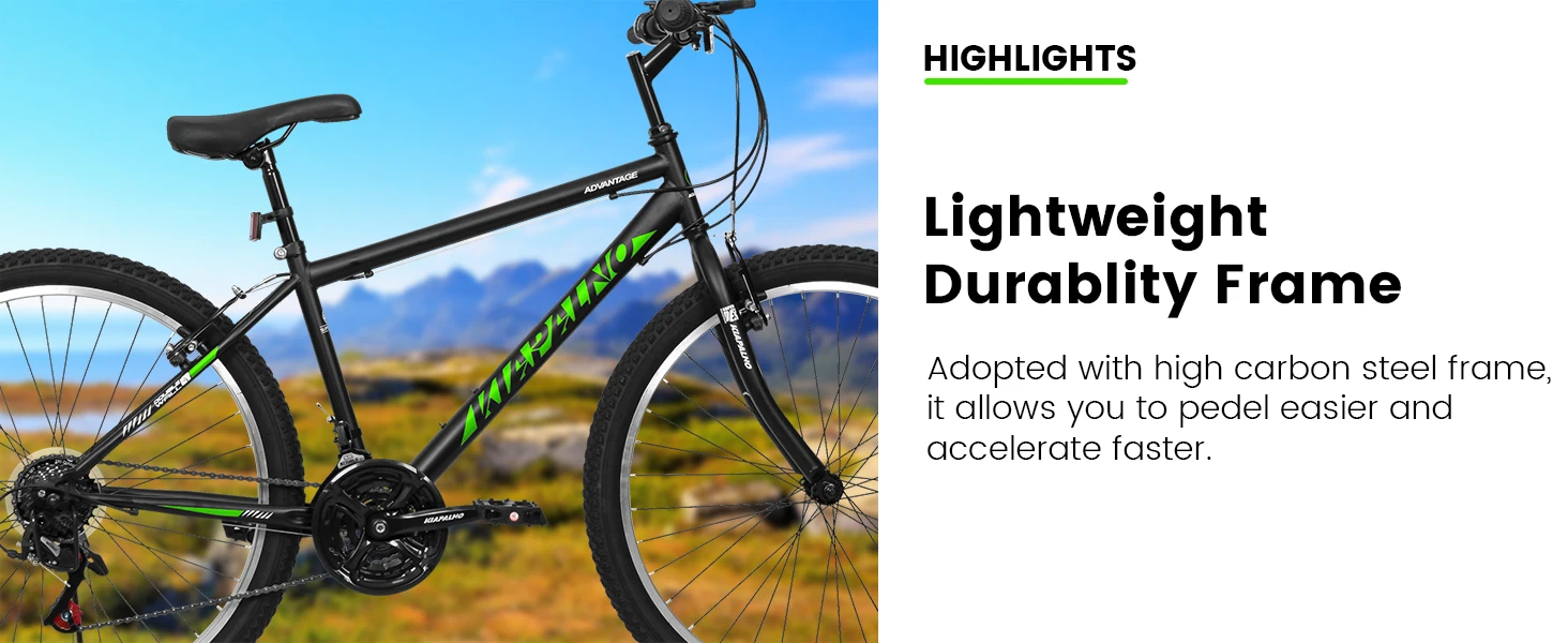 [Entry-Level Performance with Affordability and Functionality] This mountain bike is specifically designed for newcomers to the sport, striking a perfect balance between cost-effectiveness and practical features. Its durable and stable steel frame ensures a safe and steady riding experience, making it an perfect choice for those just starting their mountain biking journey.