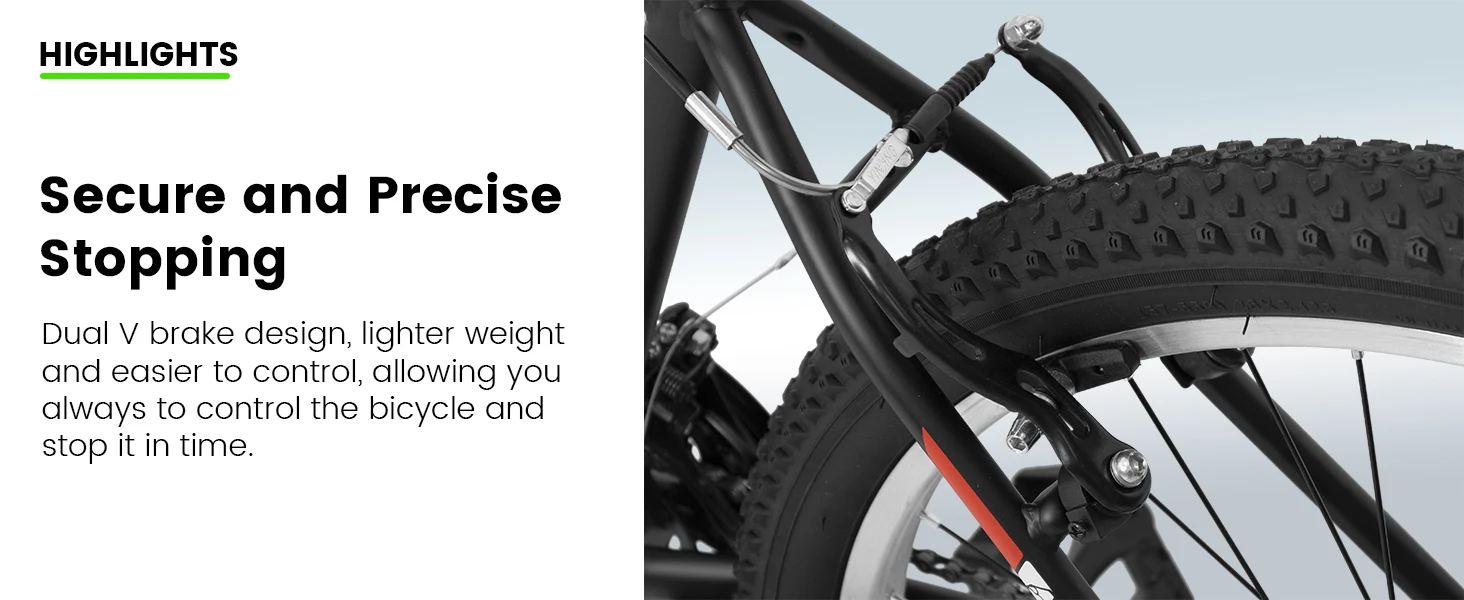 [Reliable Control with Linear-Pull Brakes] Front and rear linear-pull brakes offer excellent control and strong stopping power, ensuring that riders can safely navigate any situation. These brakes are lighter and easier to control, providing a responsive and reliable braking system that enhances the overall riding experience.