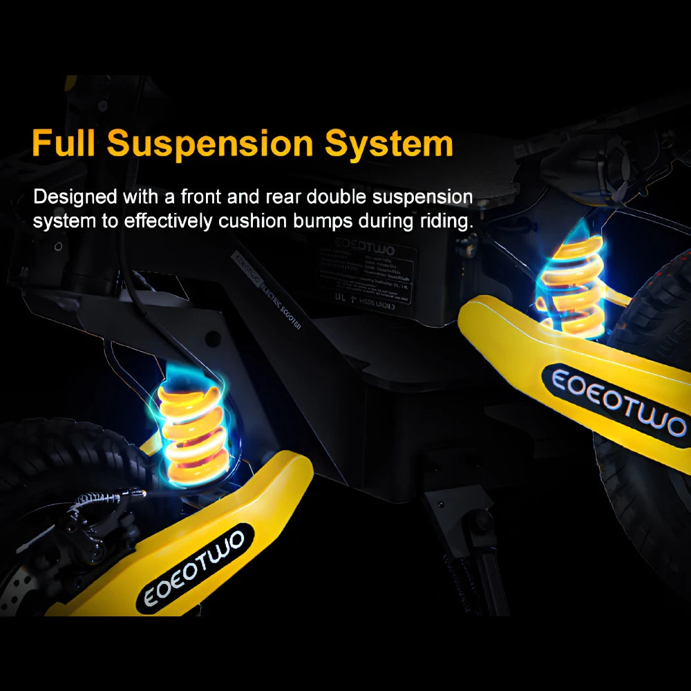 Equipped with a 2400W dual-drive motor (1200W × 2), it delivers powerful performance with ease, capable of climbing slopes with an angle of up to 35°. Combined with 11-inch off-road vacuum tires and front and rear spring suspension systems, it effortlessly handles challenging terrains such as sand, gravel, and mud, making outdoor adventures as smooth as riding on flat ground!