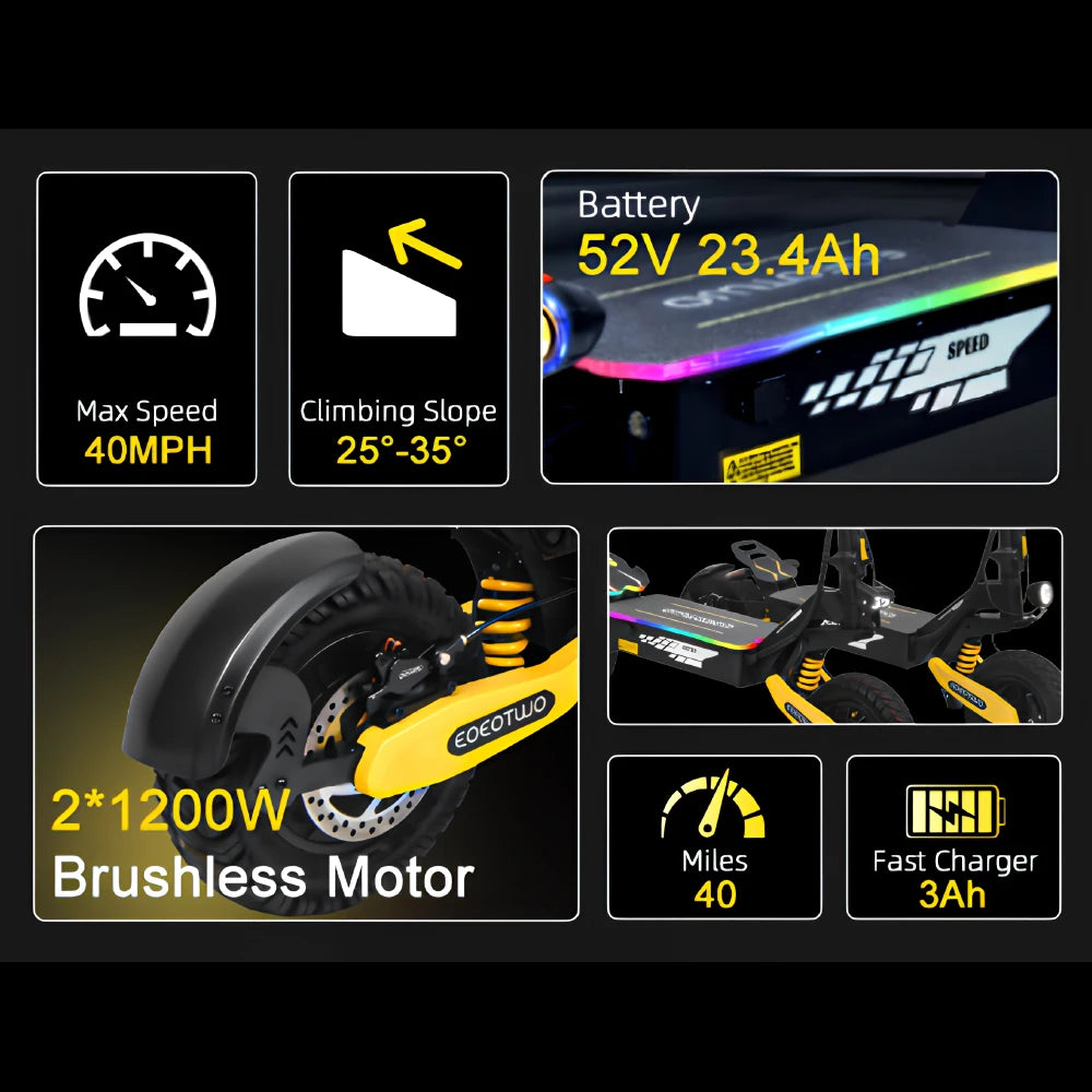 EOEOTWO GT06PLUS Electric Scooters 40mph 2400W Dual Motors 52V23AH Lithium Battery E Scooter Adult Hydraulic Brake 11'' Off-Road Tires Escooter