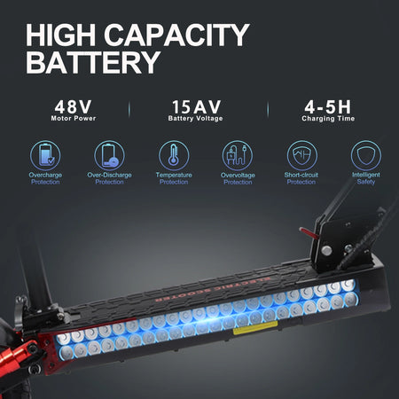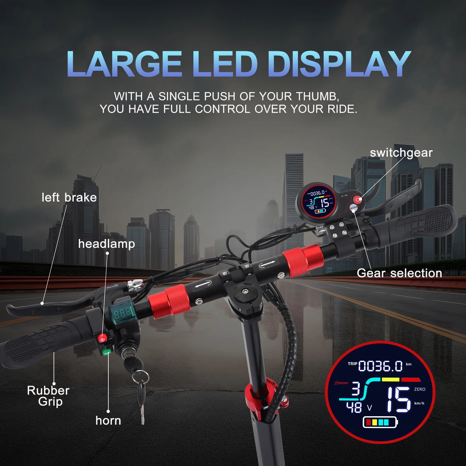FREEBOY Adult Foldable Electric Scooter 800W 48V15Ah 10'' Off-Road Vacuum Tire 30 Miles Range Dual Suspension Commuting E-Scooter