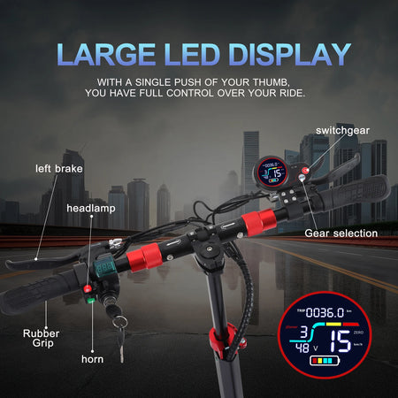 The FREEBOY adult electric scooter combines power, portability, and comfort for daily commuting and off-road exploration. Featuring an 800W motor and a 48V 15Ah battery, it delivers up to 30 miles of range on a single charge. Its foldable frame ensures easy storage and transport, while 10-inch off-road vacuum tires and dual suspension provide a smooth, stable ride across varied terrain. Designed for adult riders, this e-scooter offers reliable performance with modern convenience.