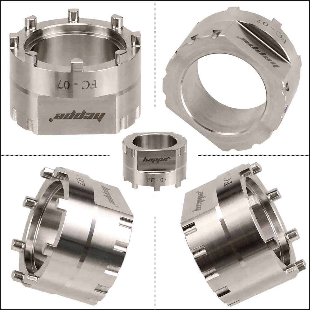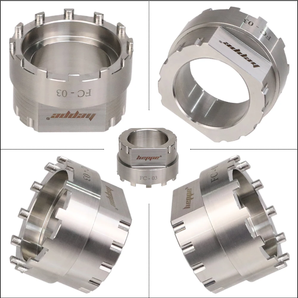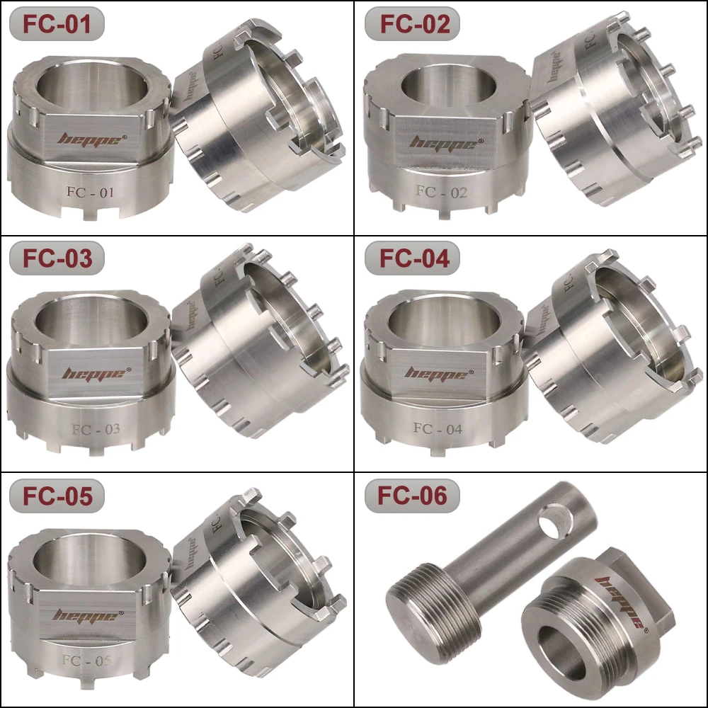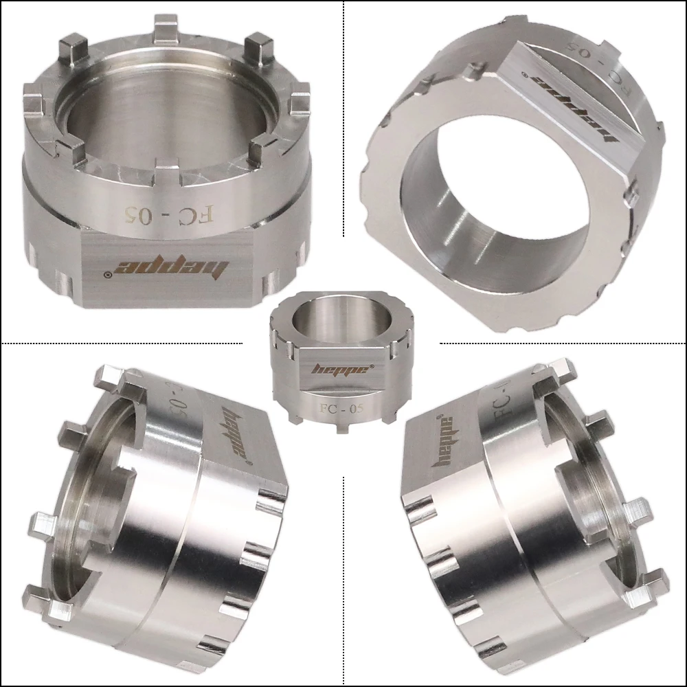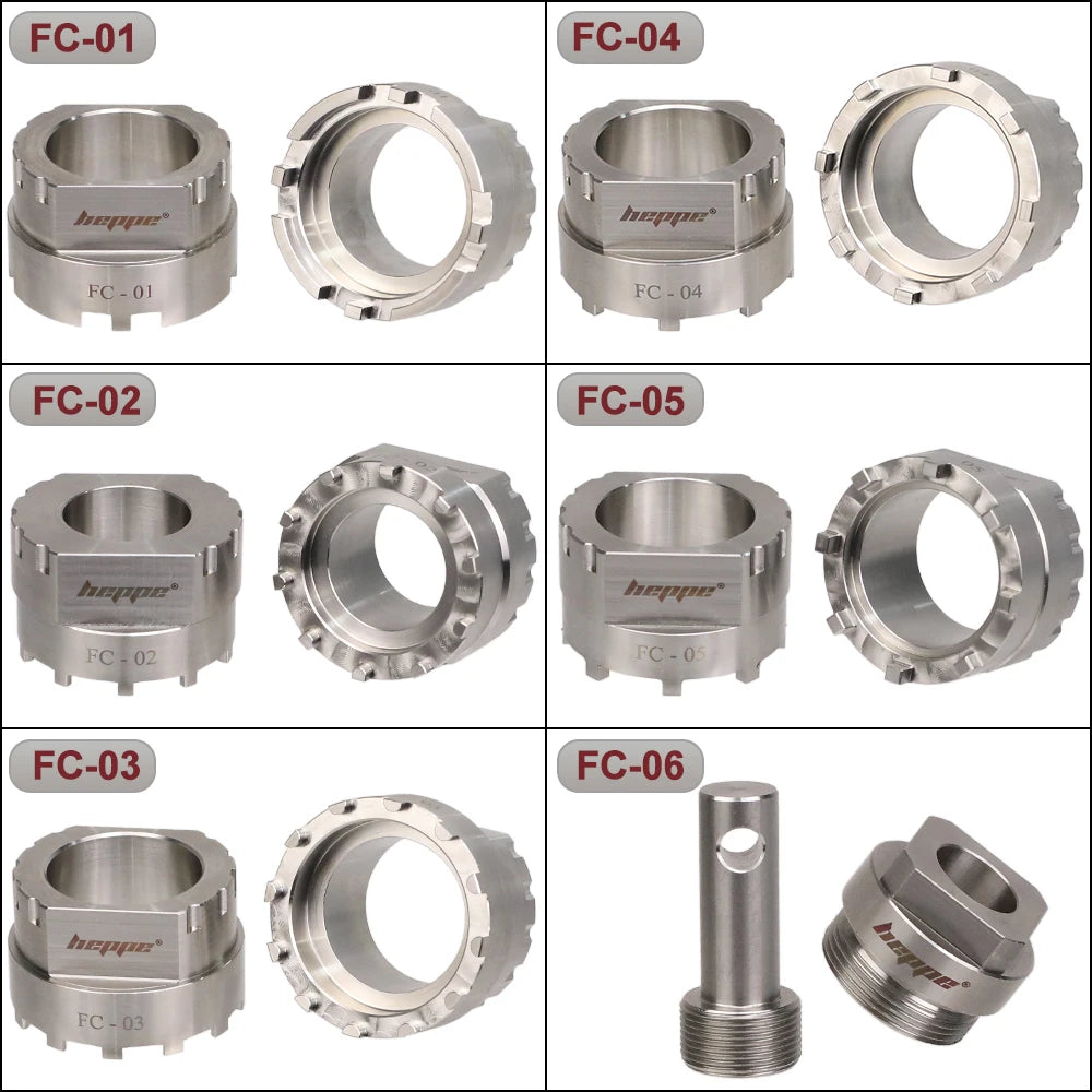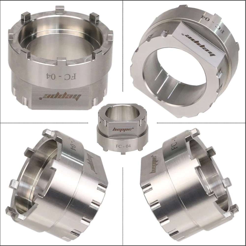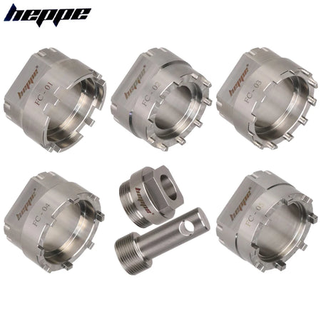 The HEPPE crank removal tool is a precision instrument engineered specifically for the specialized maintenance of high-performance bicycle cranksets. It serves the crucial function of accurately installing and removing the proprietary crank spider locking rings found on systems from manufacturers like ROTOR, Cannondale SI, S-works, and FSA/SRM, ensuring reliable and proper component servicing.