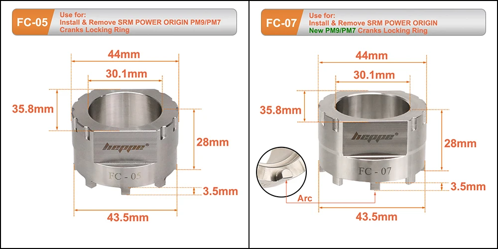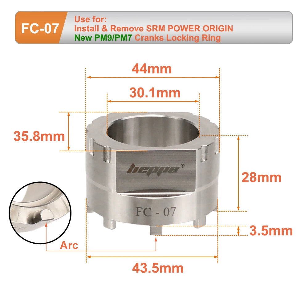 -- FC-07 Use for: Install & Remove SRM POWER ORIGIN NEW PM9/PM7 Cranks Locking Ring.