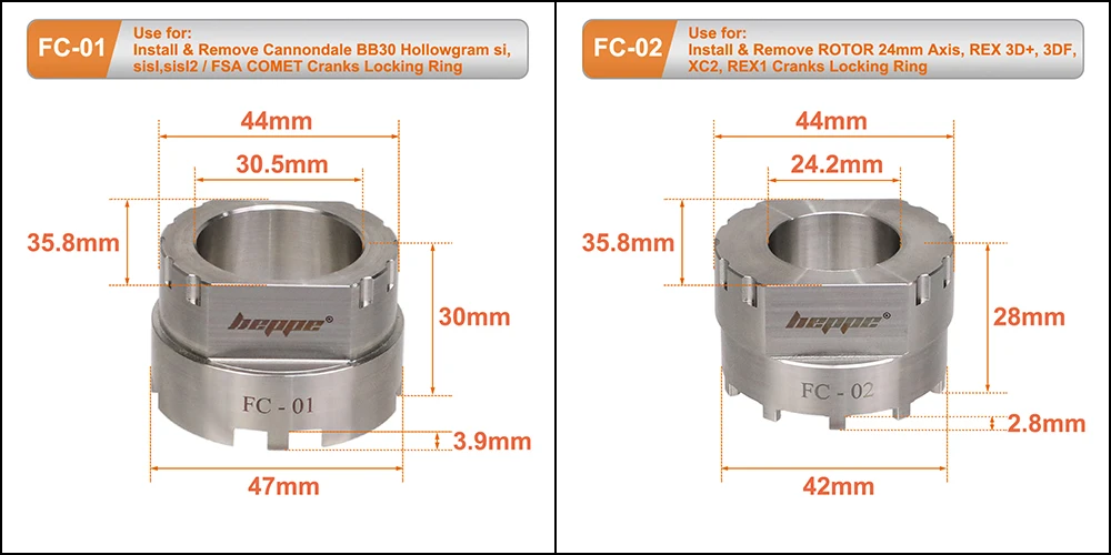 -- FC-02 Use for: Install & Remove ROTOR 24mm Axis, REX 3D+, 3DF, XC2, REX1 Cranks Locking Ring.