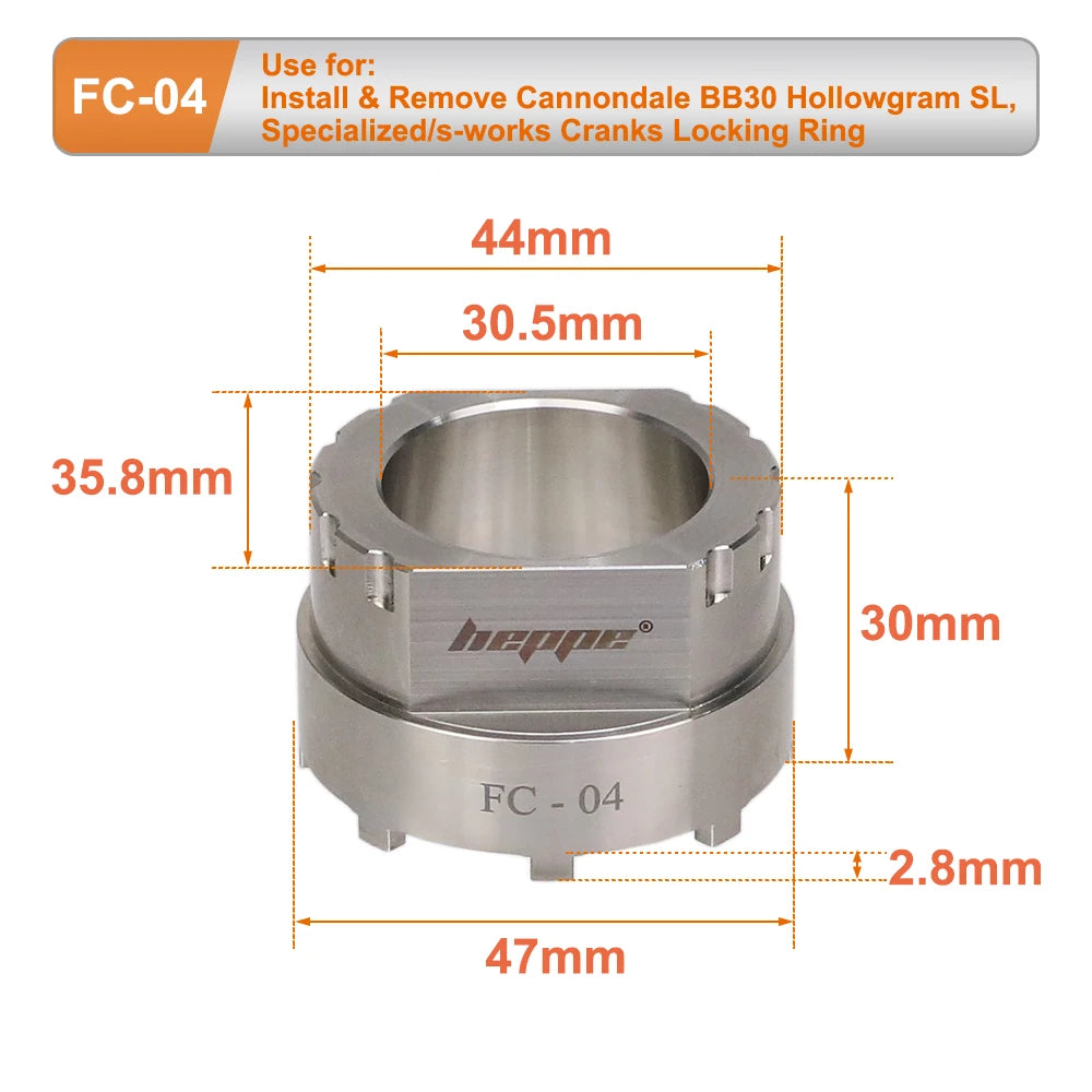 - FC-04 Use for: Install & Remove Cannondale BB30 Hollowgram SL, Specialized/s-works Cranks Locking Ring