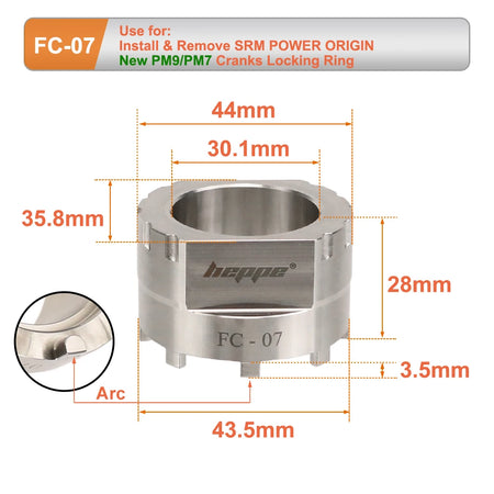 - FC-07 Use for: Install & Remove SRM POWER ORIGIN New PM9/PM7 Cranks Locking Ring