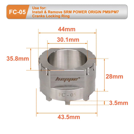 - FC-05 Use for: Install & Remove SRM POWER ORIGIN PM9/PM7 Cranks Locking Ring