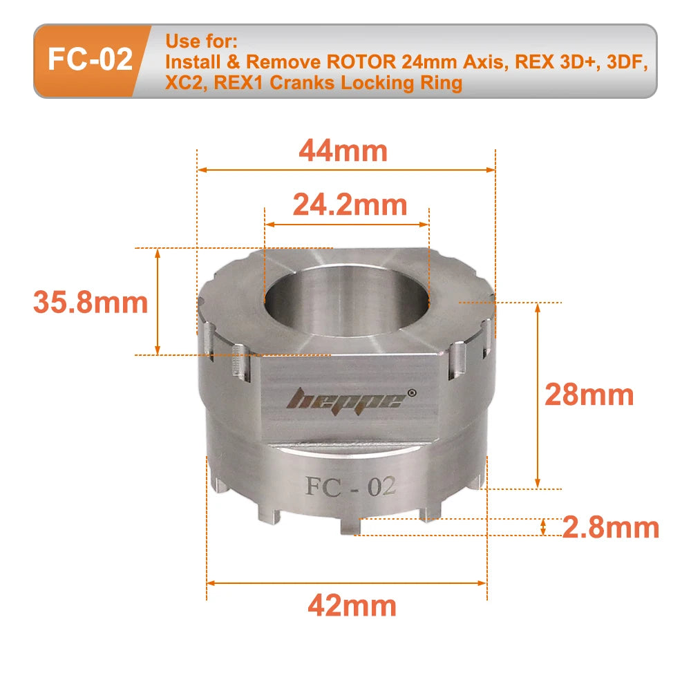 - FC-02 Use for: Install & Remove ROTOR 24mm Axis, REX 3D+, 3DF, XC2, REX1 Cranks Locking Ring