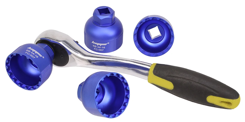 The HEPPE dual-use wrench is an essential component for bicycle maintenance, precisely engineered for simultaneous utility: handling both the removal of Centerlock disc brake lockrings and the critical installation or servicing of SHIMANO BB52 mountain bike bottom brackets. This versatile instrument ensures that technicians can perform crucial drivetrain and braking system adjustments efficiently with a single, reliable implement.