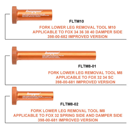 The HEPPE Bike Fork Spring Damper Removal Tool is a specialized and durable instrument designed for the professional maintenance of FOX front suspension systems. Precision engineered from robust 7075 T6 aluminum alloy, this tool facilitates the precise and non-destructive removal of internal spring dampers. Its scope of compatibility is extensive, covering the popular FOX 32, 34, 36, 38, and 40 series, including both SC and TC models, ensuring essential service capability for high-performance cycling components.