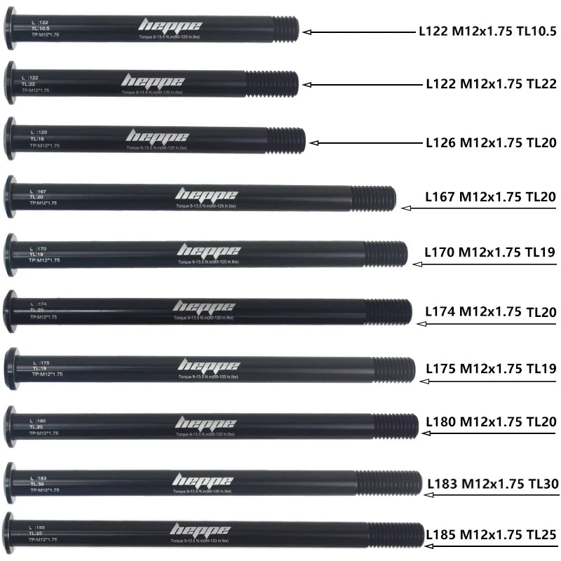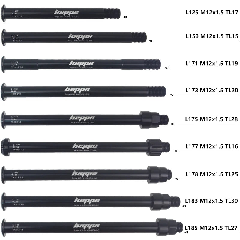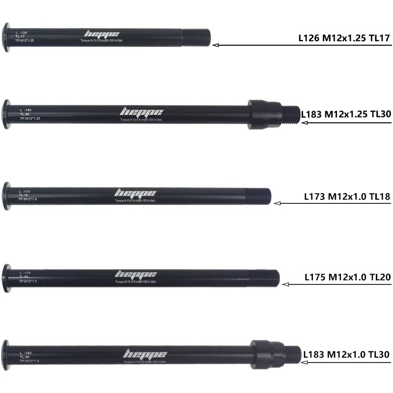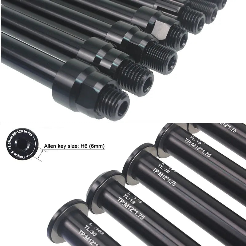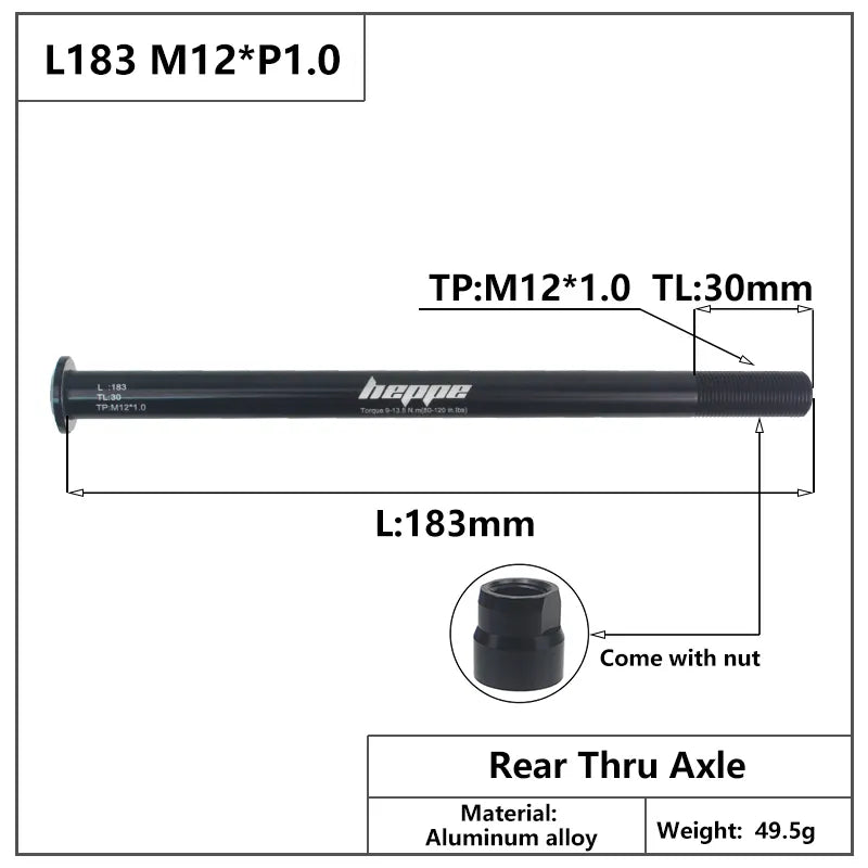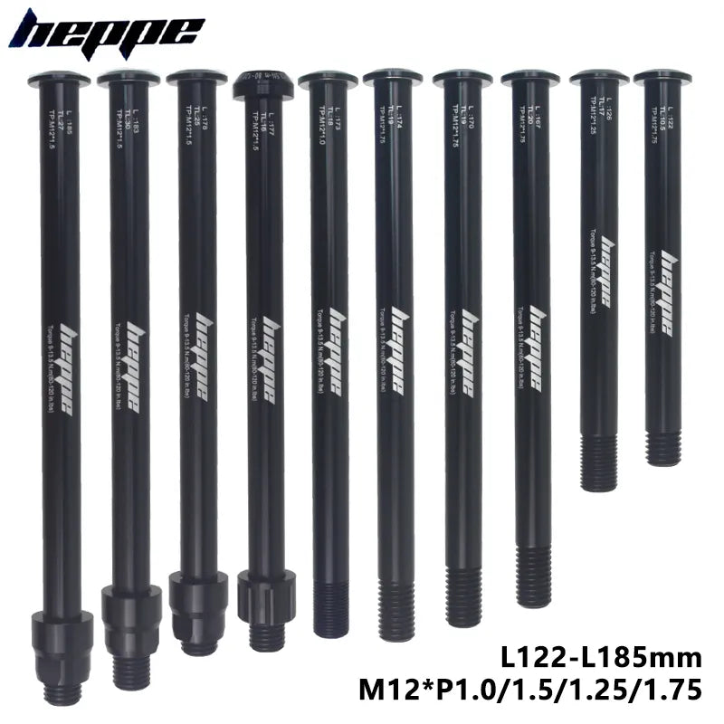 HEPPE Bike Thru Axle Front Fork Shaft Skewers 12x100/110 Rear Hub Thru Axle 12x142/148 M12xP1.0/1.25/1.5/1.75 Bike Quick Release