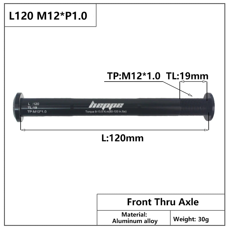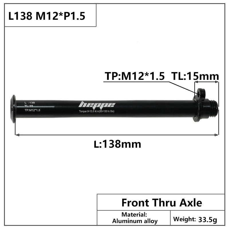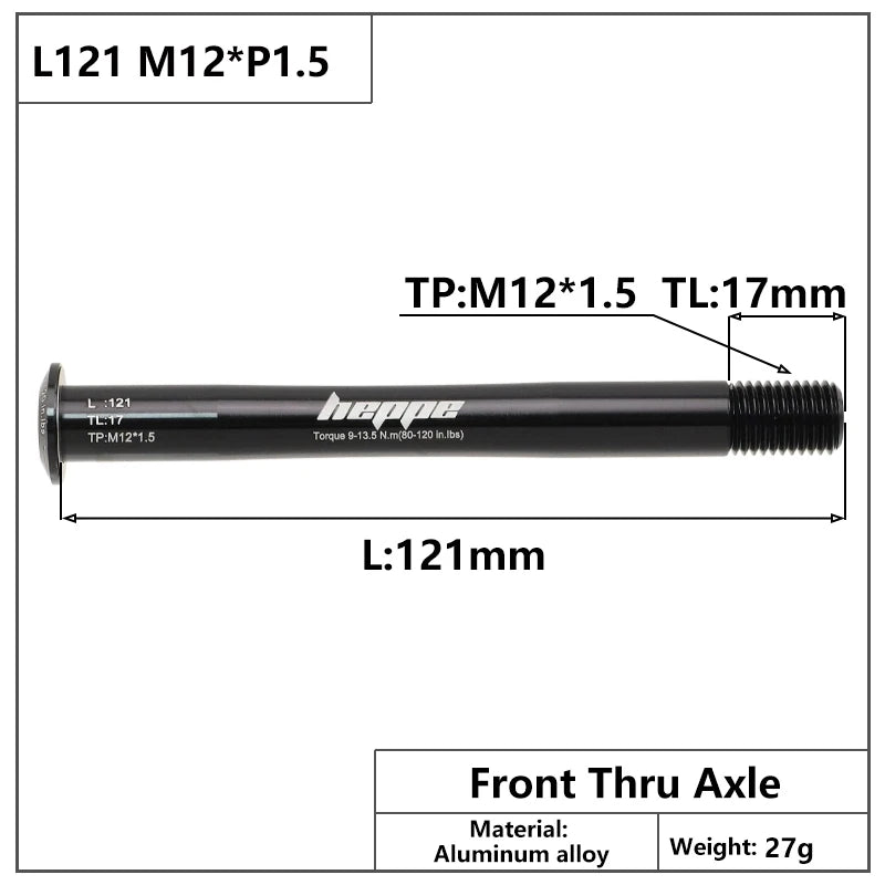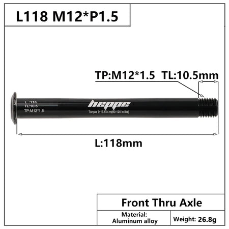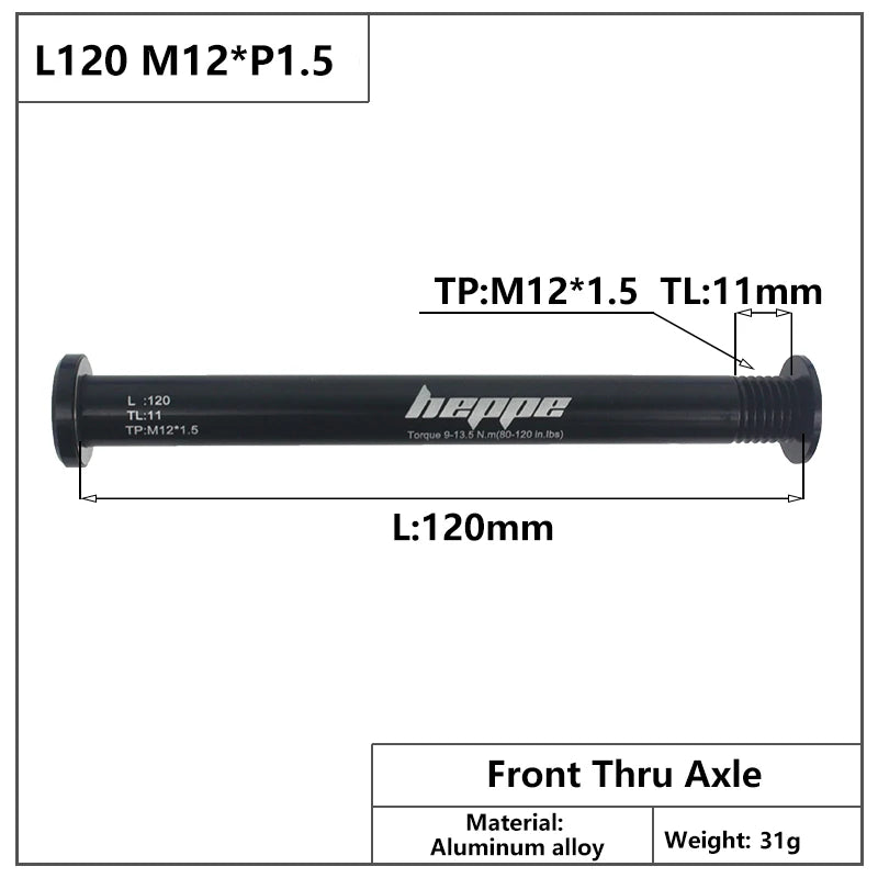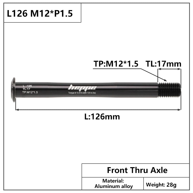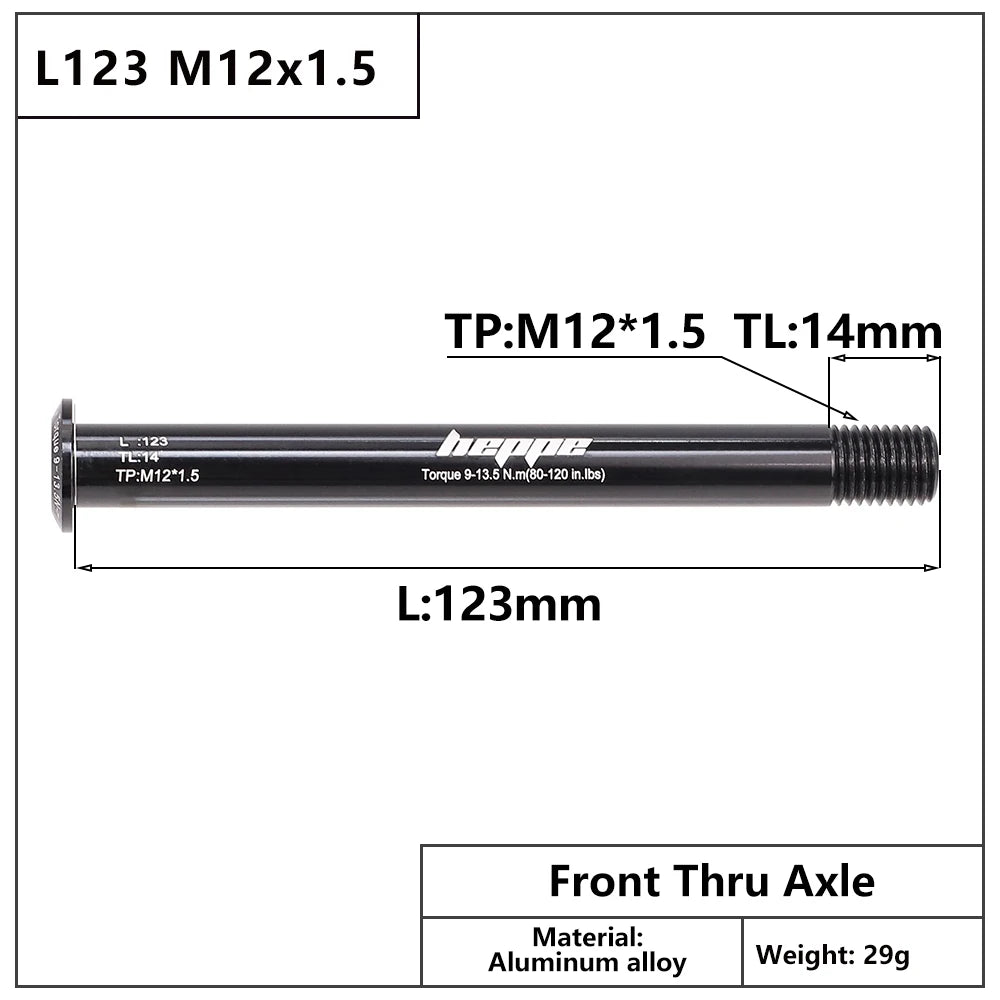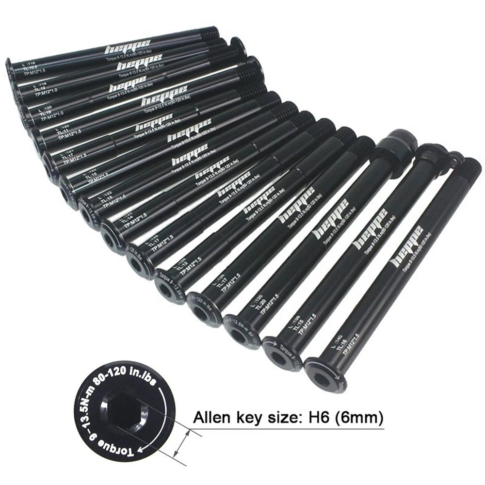 HEPPE MTB Road Bike Thru Axle Kit - Front Fork & Rear Hub Skewers 12x142/148 12x100/110 Quick Release Bicycle Axle with M12xP1.0/1.5 Thread