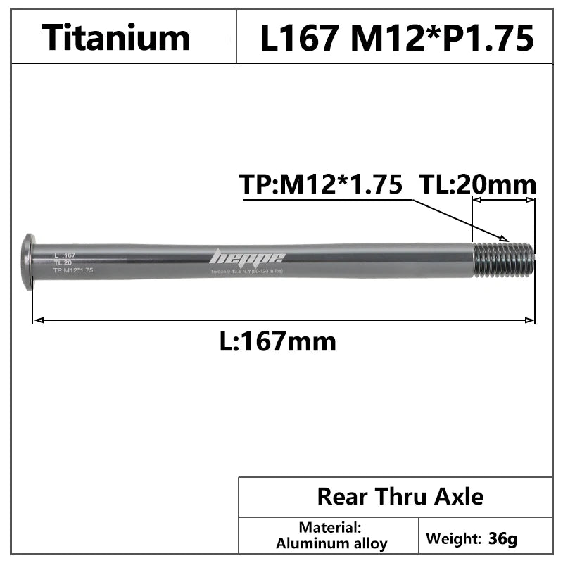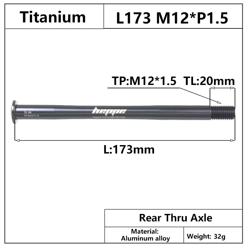 HEPPE MTB Road Bike Titanium Thru Axle Ultra Light Bike Axle 12x142 12x148 Rear Hub Thru Axle Bike Fork 12x100 12x110 Shaft