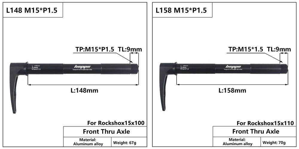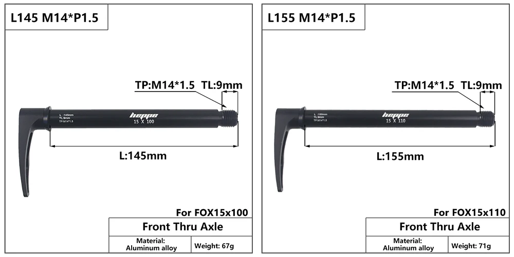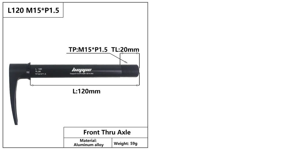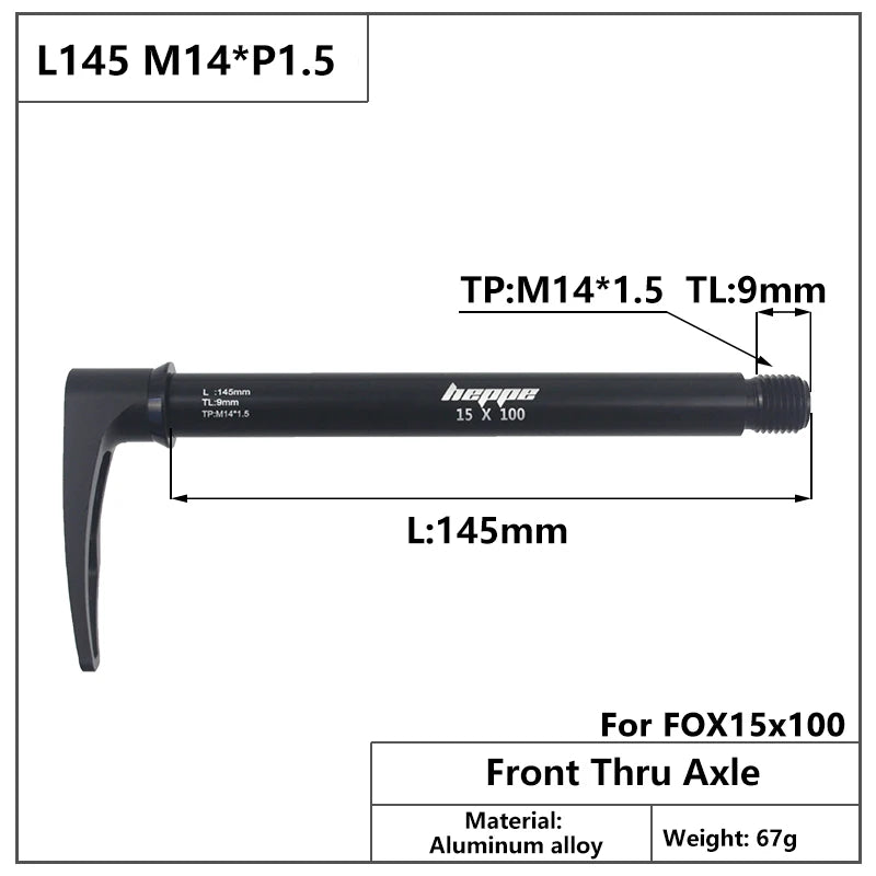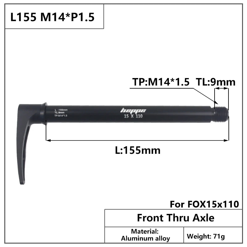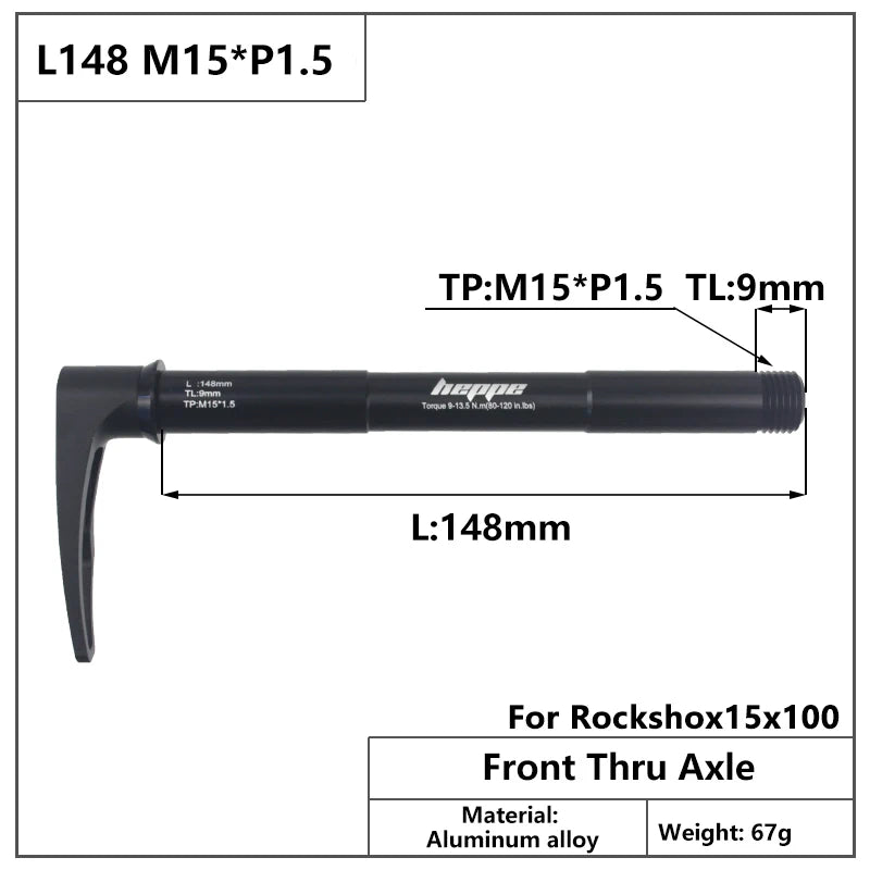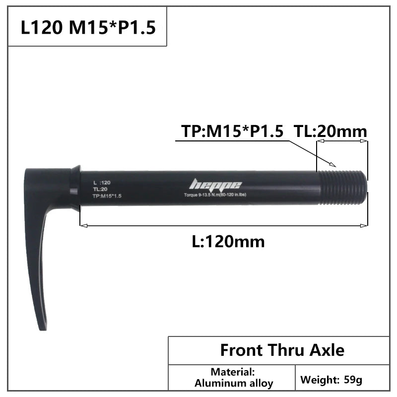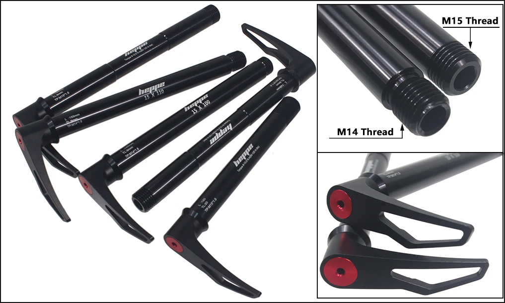 HEPPE Thru Axle Front Fork Skewer 15x100/15x110 Quick Release M15xP1.5 Thread Pitch Aluminum Bike Part for MTB Road Bikes