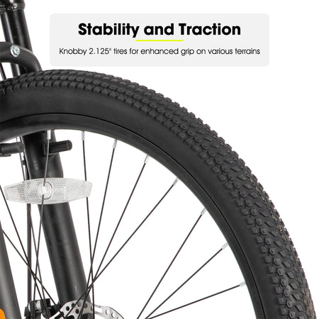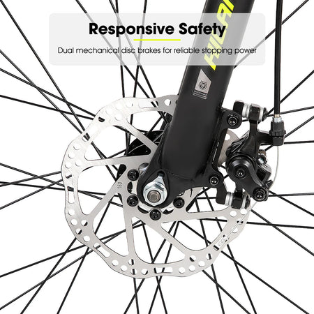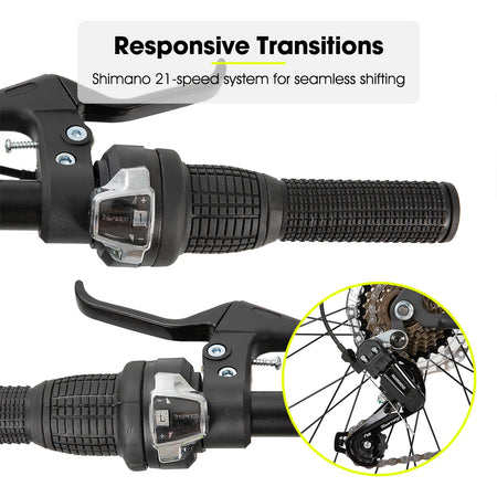 The Hiland 26-inch Mountain Bike presents a harmonious blend of rugged capability and urban adaptability. Equipped with a Shimano 21-speed drivetrain, it empowers riders with versatile gear options for conquering diverse terrains. The suspension fork adeptly absorbs shocks, ensuring a smooth and controlled ride, while the dual-disc brakes deliver reliable stopping power in various weather conditions. Integrated fenders enhance practicality, shielding riders from splashes and debris, making it a suitable choice for both off-road adventures and daily commutes.