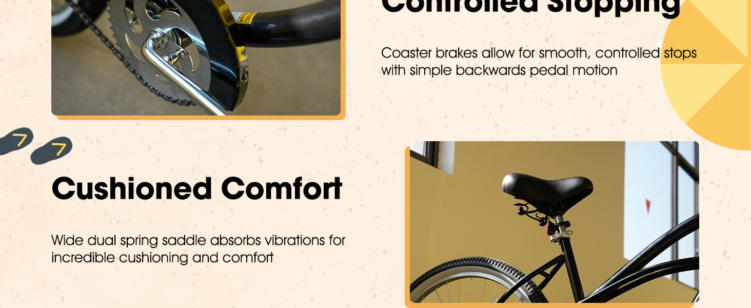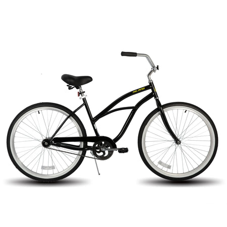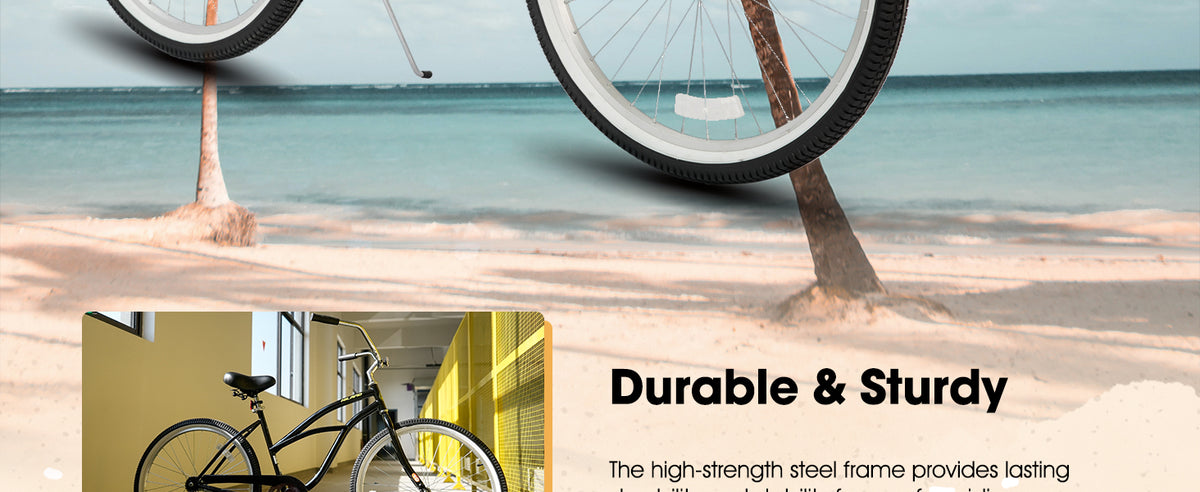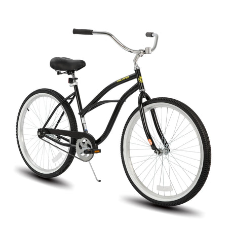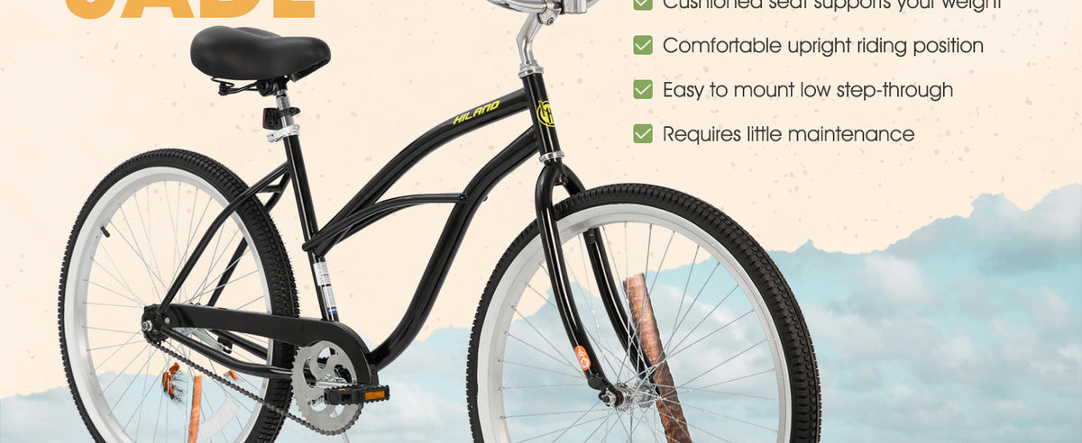 The HILAND 26-inch Women's Beach Cruiser Bike embodies relaxed sophistication and practicality for everyday commuting. Its classic cruiser frame, paired with a comfortable seat featuring dual springs, ensures a smooth and enjoyable ride. The single-speed design simplifies operation, while the rear coaster brake offers reliable stopping power. From leisurely beachside rides to navigating city streets, this bike blends style and functionality for women seeking a comfortable and convenient transportation option.