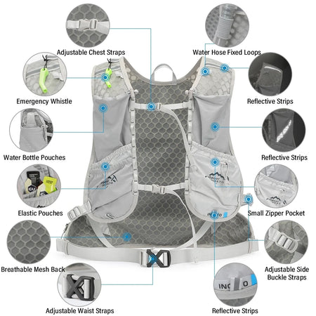 INOXTO 12L Unisex Cycling Hydration Vest Lightweight Running Backpack for Camping Mountaineering - Polyester Riding Pack