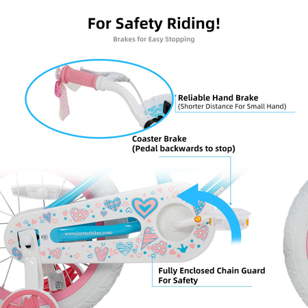 The JOYSTAR ANGEL Girls Bike presents a charming and secure introduction to cycling for young riders. Available in 12, 14, 16, and 18-inch sizes, this colorful bicycle features a delightful basket for carrying treasures and reliable training wheels to build confidence. Designed with a foot brake for intuitive stopping power, the ANGEL ensures a safe and enjoyable learning experience for children as they embark on their two-wheeled adventures.