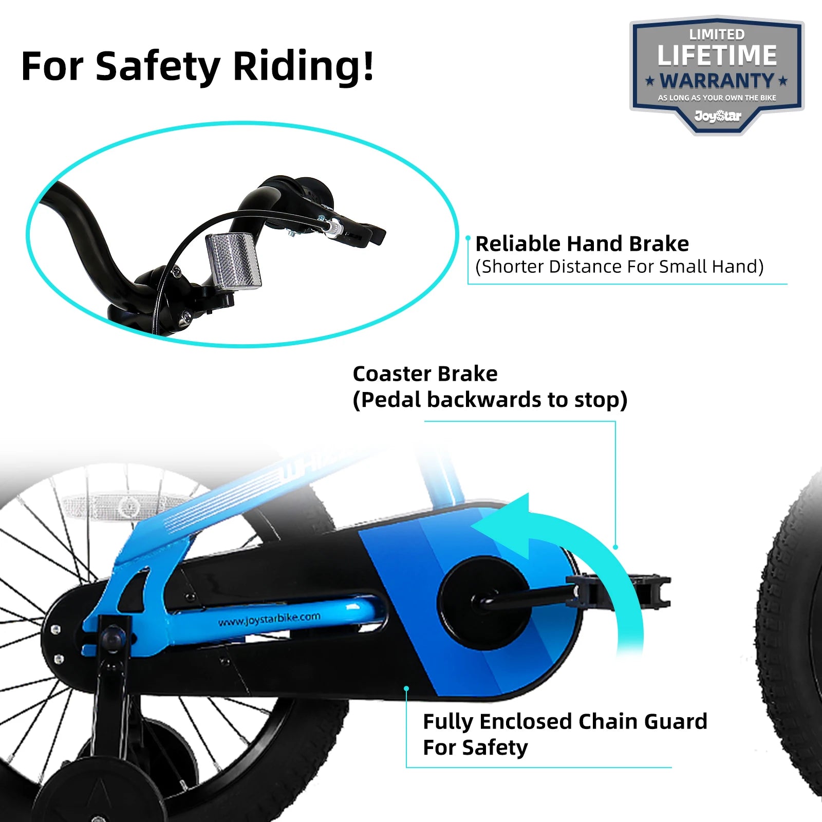 The JOYSTAR Whizz Kids Bike is designed for both boys and girls aged 2-9 years old, providing a fun and safe cycling experience. With options ranging from 12" to 18" wheels, this bike caters to the varying needs and heights of growing children. The durable steel frame and high-quality components ensure long-lasting performance, while the vibrant color options make the bike visually appealing. The inclusion of training wheels allows young riders to gradually build confidence and balance, transitioning smoothly from a supported ride to independent cycling. As a versatile and reliable choice for young cyclists, the JOYSTAR Whizz Kids Bike is an excellent investment in your child's physical development and outdoor adventures.