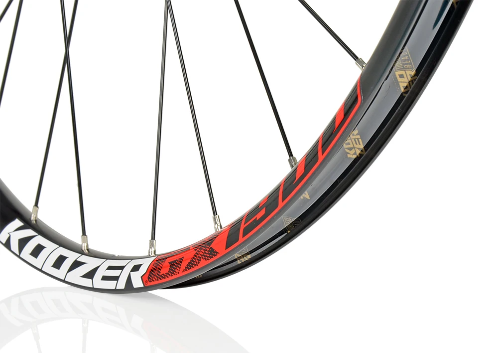 - Hub: Koozer 450 straight pull, front 5x100 QR/12x100 THRU + rear 5x135 QR/12x142mm THRU