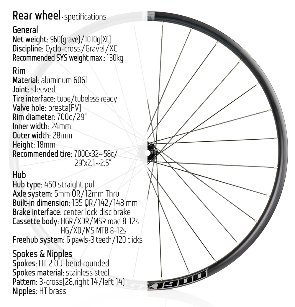 25 New GX1900 MTB/Gravel wheel set, 700c/29 inches in available,Leading smart 4D multi-angle spoke holes and 24mm inner width high precision sleeved sandblasted anode tubelessready rims are featured, using 450 120 clicks straight pull high-strength CR-MO steel axle hub and HT stainless steel spoke. The overall high strength makes it adaptable to more intense riding conditions. 28 holes front 5x100mmQR/15x100/12x100/15x110mm boost+rear 5x135QR/12x142/5x141 QR/12x148mm Thru boost with HG/XD/MS/HGR/XDR/MSR cassette body with tool-free conversion, 2 color collocation, more cost-effective choice for you!