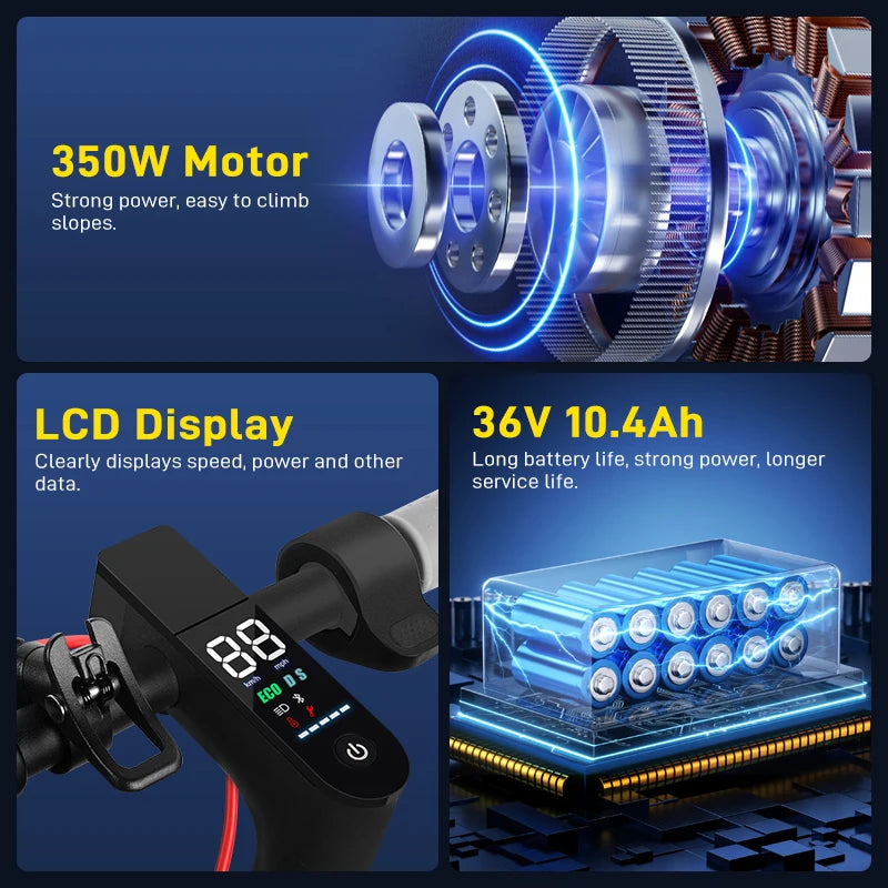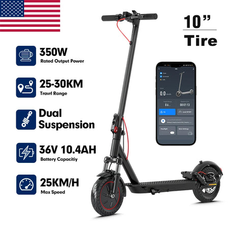 【Unmatched Performance and Durability】The Mankeel MK085 Pro 10.4Ah 350W Electric Scooter is not just a mode of transportation; it's a statement of style and performance. Designed for the urban commuter, this scooter boasts a robust aluminium alloy frame that promises longevity and durability. Its 10-inch tires provide a smooth ride over various terrains, ensuring you arrive at your destination with ease. The scooter's impressive 19MPH top speed, combined with a range of 15-19Miles, makes it an ideal choice for those who value both speed and efficiency.