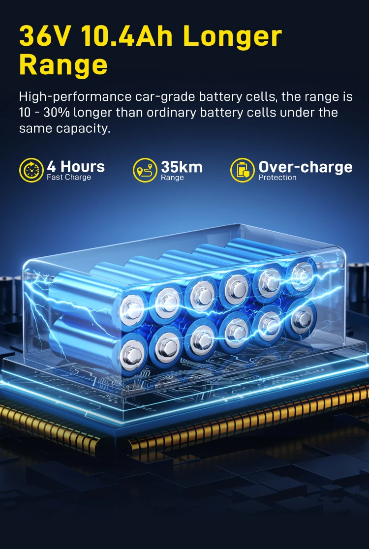 - Battery: 36V 10.4Ah lithium battery