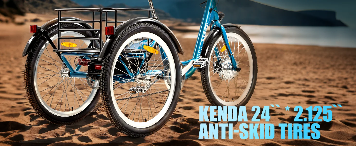 MEIGI 3-Wheel Electric Cargo Tricycle 750W Peak Motor 36V 24 Inch Tire City Bike for Adult Men Women Powerful Strong