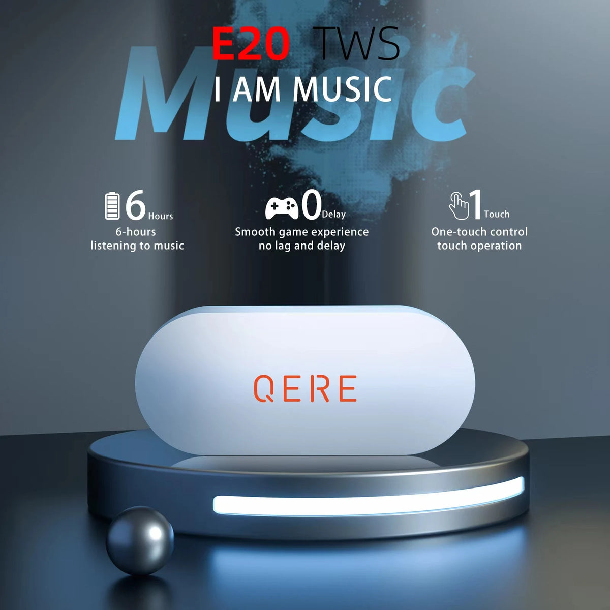 QERE E20 TWS Wireless Headphones Bluetooth 5.3 HD Microphone 13mm Driver 68ms Low Latency 4 Mics ENC Call In-Ear Earphones