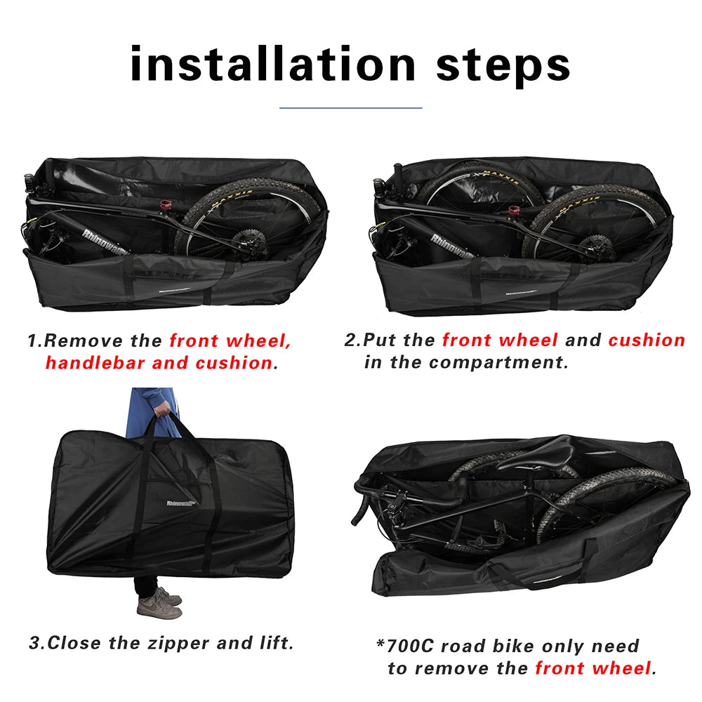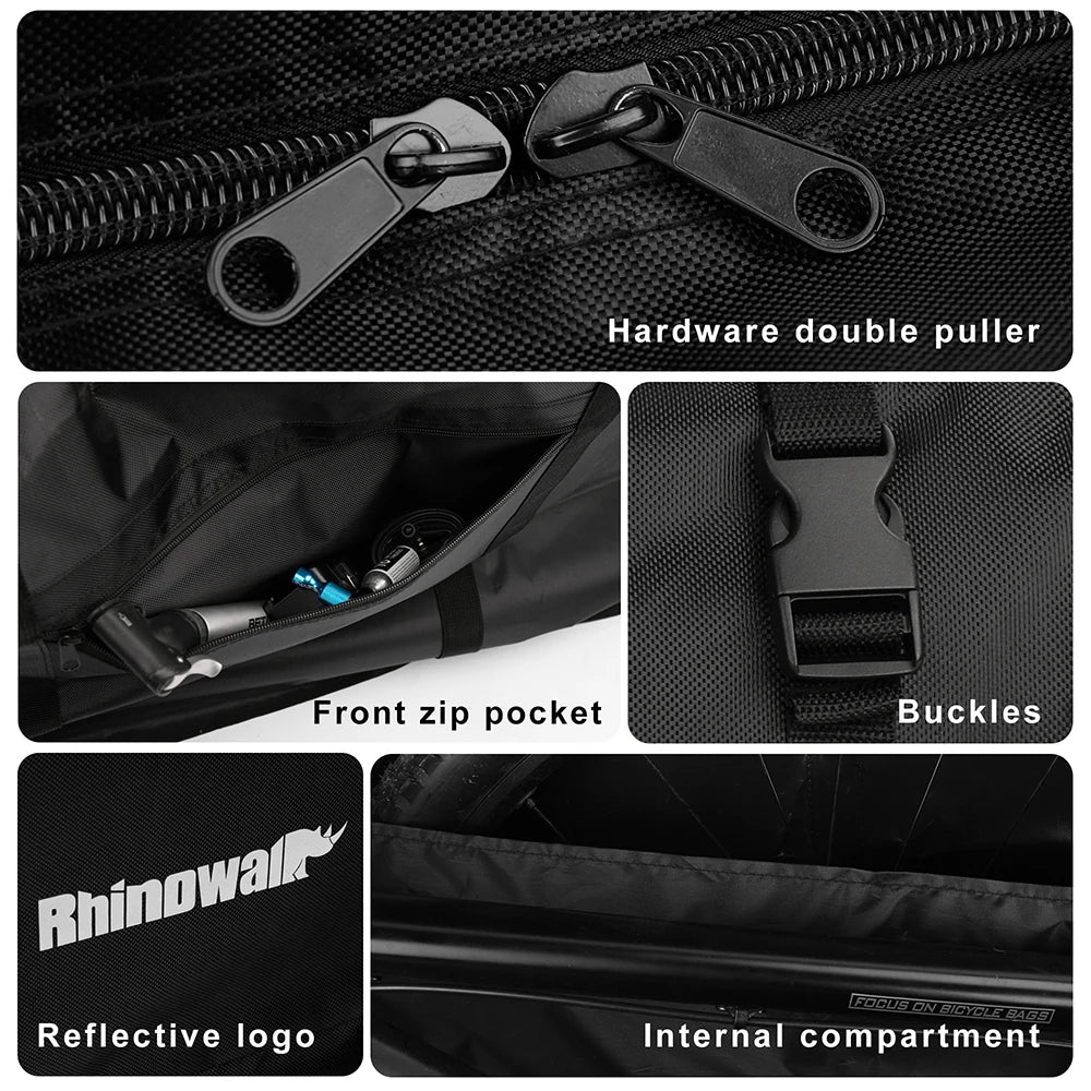 Discover the Rhinowalk RM263B Bicycle Storage Bags, designed for 27.5-inch mountain bikes and 700c road bikes. These durable, spacious carry bags offer exceptional protection and convenience for your cycling adventures. Perfect for transportation and storage, keep your bike safe and secure with this must-have accessory!