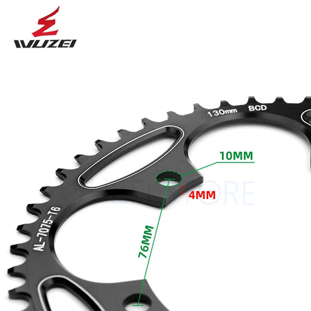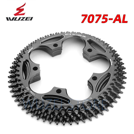This Wuzei Road Bicycle Chainring is perfect for cyclists who want to upgrade their ride and improve their performance. It is constructed with 7075-AL aluminum alloy, making it lightweight yet durable. This chainring features 110/130 BCD and comes in 50/52/54/56/58/60T sizes for a customizable fit. It is designed for optimal power transfer, so you can enjoy a smoother ride with more efficient pedaling. The combination of lightweight construction and superior materials make this chainring a great choice for any cyclist.