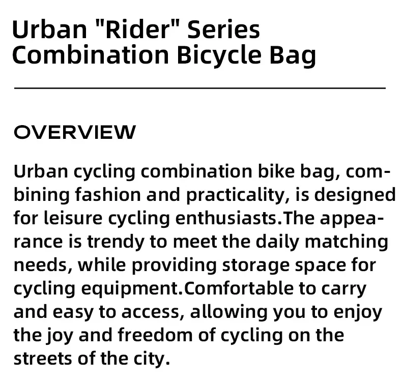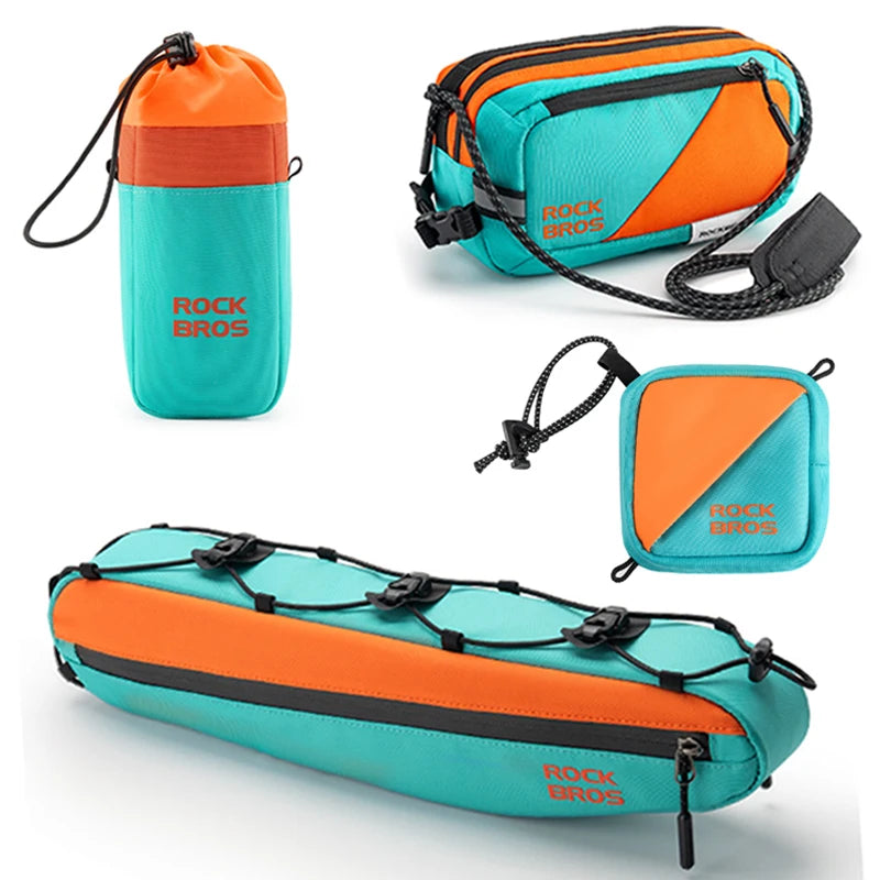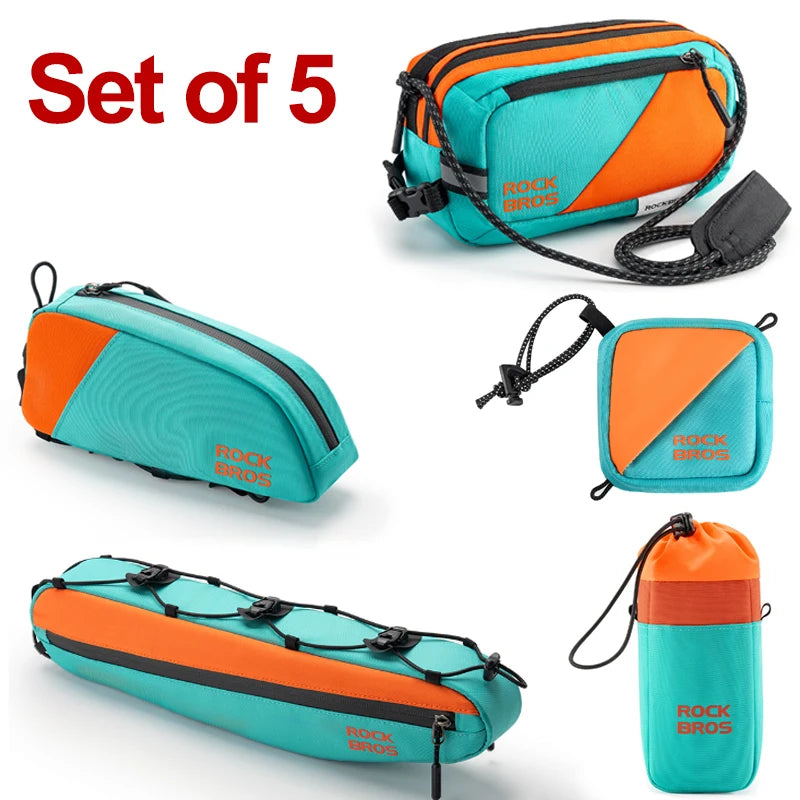 Made from durable polyester fabric, each bag is built to withstand daily riding conditions while keeping your essentials secure and easily accessible. The set includes a combination of front handlebar bags, triangle frame bags, top tube bags, and saddle pouches, allowing you to customize your setup based on your ride length and storage needs.