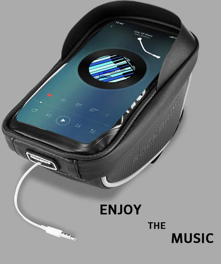 The ROCK BROS Bike Phone Bag is the perfect way to take your phone with you on your rides. This waterproof handlebar bag is designed to fit most bike handlebars and provide a secure carrying option for your phone. The bag is constructed from durable and water-resistant nylon, and features a touch-sensitive, transparent window that allows you to use your phone's touchscreen without having to remove it from the bag. It's also equipped with a headphone port and a reflective strip for added visibility during night rides. Whether you're biking to the store or taking a long ride, this bike phone bag will keep your phone secure and accessible.