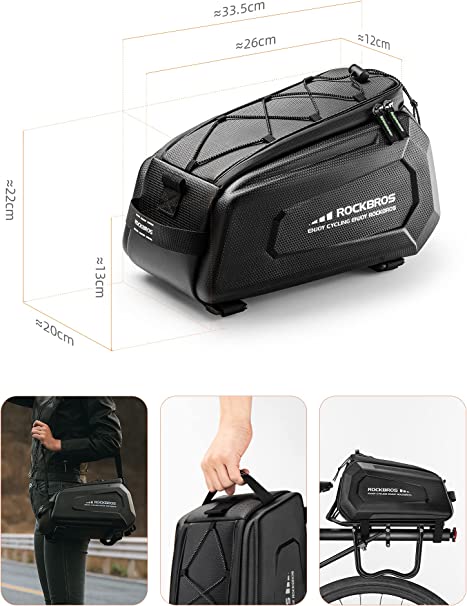 The ROCKBROS Bike Rack Bags provide the ultimate protection for your bike and gear. The hard shell design protects your bike and gear from the elements and is built to last. It features reflective stripes for added visibility, a spacious interior for plenty of storage, and adjustable straps for easy attachment to your bike rack. The bag is also waterproof and dustproof to keep your gear safe and secure. Whether you're taking your bike on an epic road trip or just commuting to work, the ROCKBROS Bike Rack Bags will keep your bike and gear safe and secure.