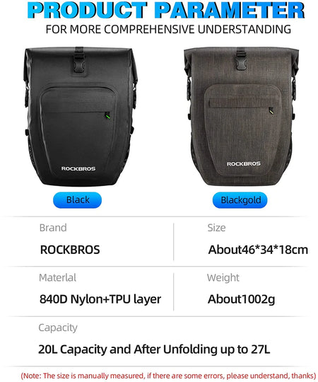ROCKBROS Bike Rack Grocery Pannier Waterproof 27L Large Capacity