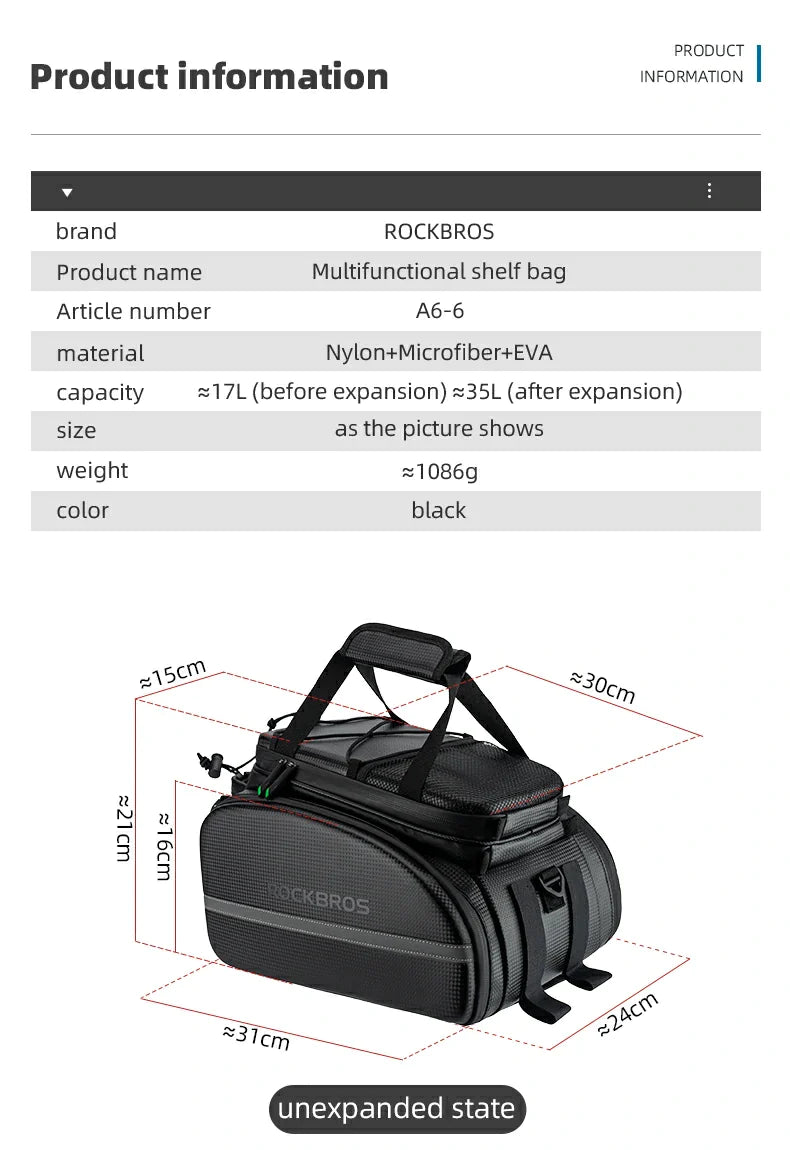 ROCKBROS Bike Rack Pannier Trunk Bag Waterproof