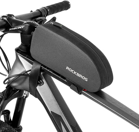 The ROCKBROS Bike Top Tube Bicycle Front Frame Bag is the perfect accessory to store your gear while on the go. This lightweight, durable, and waterproof bag mounts easily to your bike's top tube, allowing you to keep your belongings safe and secure while you ride. The front bike bag has a long slim body. Proper space design make you ride more smoothly and comfortable(Your knees will not hit the frame bike bag easily). It's portable, you can take this bike pouch easily while leaving away from your bike.