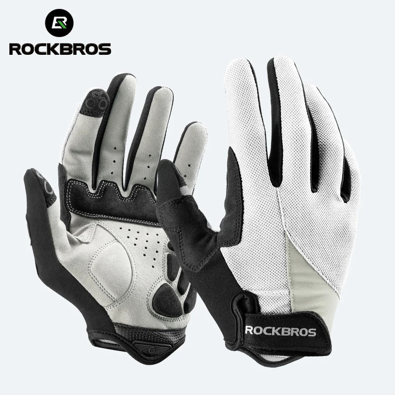 Ride with comfort, control, and protection with the ROCKBROS Full-Finger Cycling Gloves, designed for men and women who tackle MTB trails, road rides, and long-distance cycling.