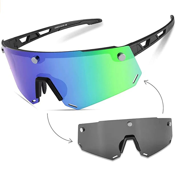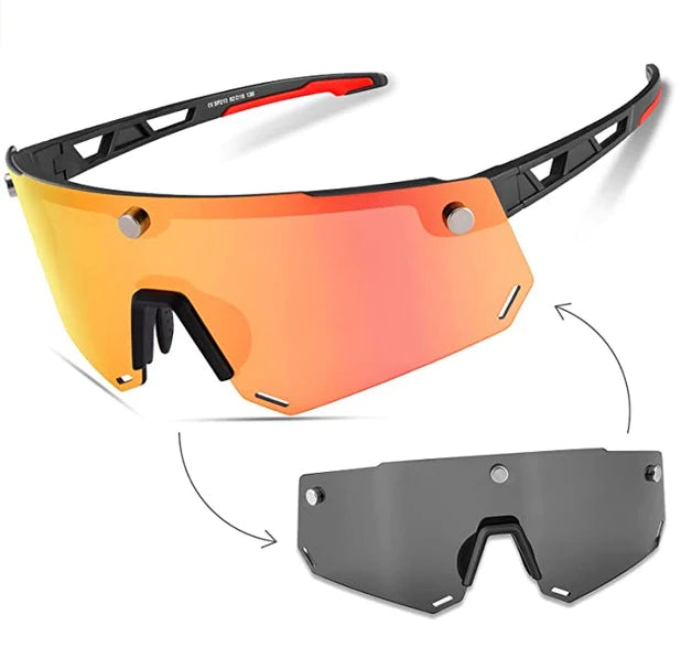 ✔ HD POLARIZED LENS & UV400 MIRRORED LENS: Cycling glasses come with two pair of lens. One is the HD polarized lens, protect your eyes from 95% harmful UVA/UVB & UVC rays when cycling(The lens color is black). The another is the UV400 sun protection mirrored lens, real mirrored coating on the lens provide a fashion shape and a protection of UV400.