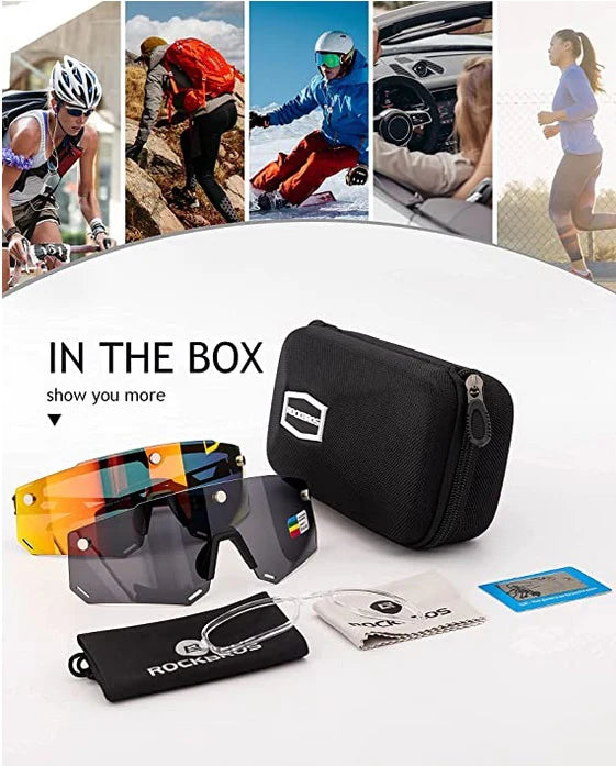 The ROCKBROS Polarized Glasses Two Lens for Replaceable Cycling Fishing Driving Sunglasses are the perfect accessory for any outdoor activity. These glasses feature two interchangeable lenses, allowing you to switch from a bright sunny day to a cloudy evening with ease. The lenses are polarized to reduce eye strain and improve clarity. The lightweight, durable frame is designed to fit comfortably on your face for long-term wear. With its UV400 protection and anti-glare technology, you can be sure that your eyes are protected from the sun's harmful rays. The ROCKBROS Polarized Glasses Two Lens for Replaceable Cycling Fishing Driving Sunglasses are perfect for any outdoor enthusiast looking for a reliable and stylish addition to their gear.