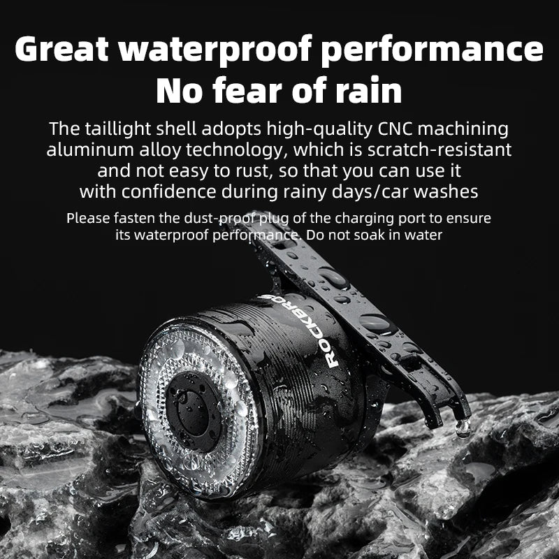 ROCKBROS Smart Brake Sensing Bicycle Tail Light – USB-C Rechargeable Waterproof Rear Bike Light