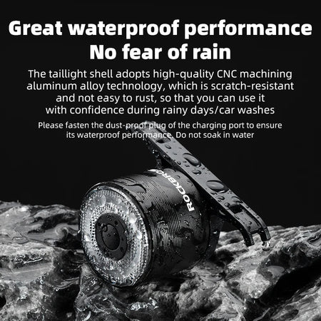 Crafted from durable aluminum alloy and rated waterproof, this taillight is built to withstand daily commuting, night rides, and changing weather conditions. With USB Type-C fast charging, multiple lighting modes, and a sleek compact design, it’s the perfect safety upgrade for any bicycle.