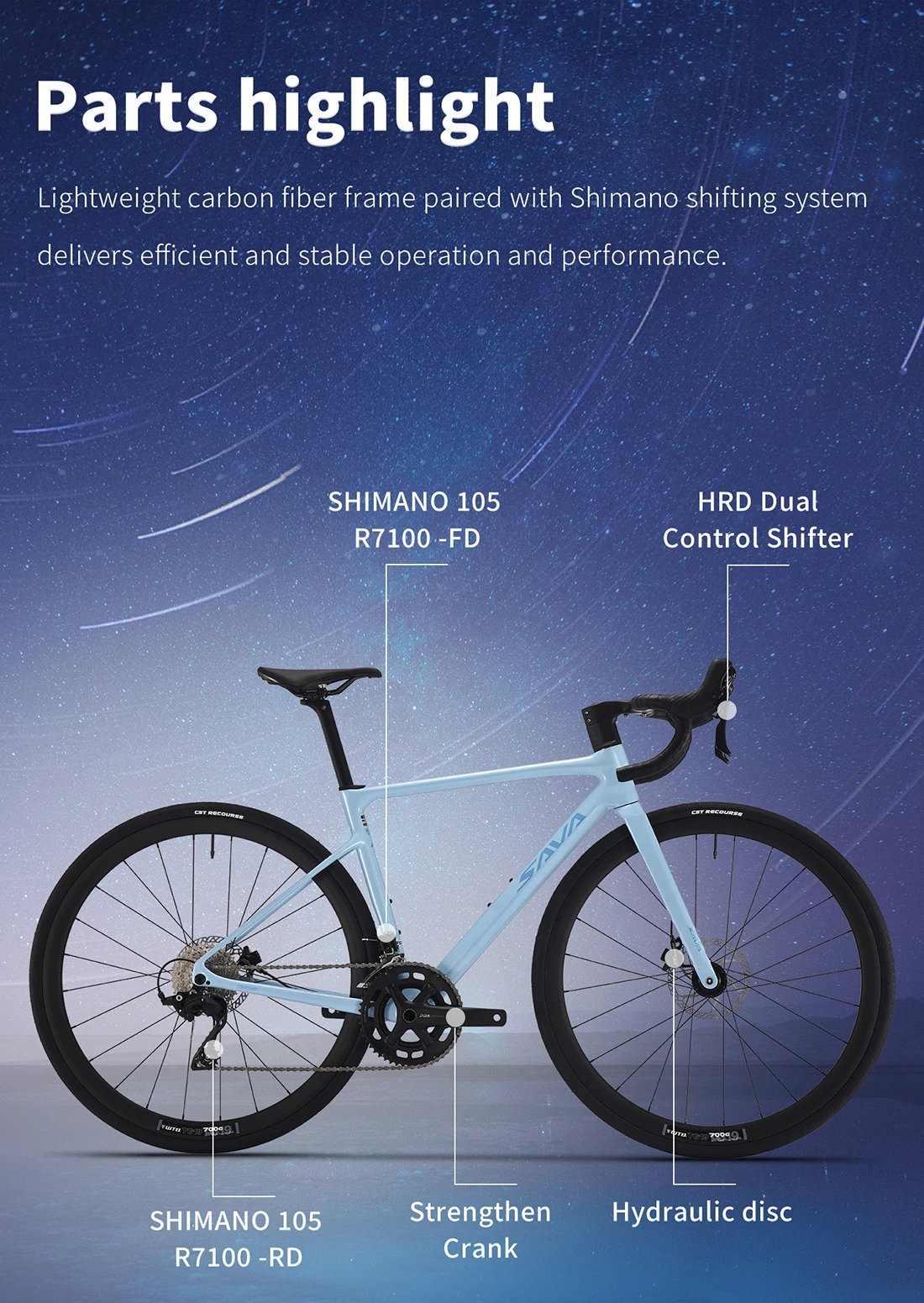 SAVA 2025 Carbon Fiber Road Bike Men's High Performance Racing Bike with HRD Dual Control Shifter Kit Front And Rear Mechanical Disc Brake