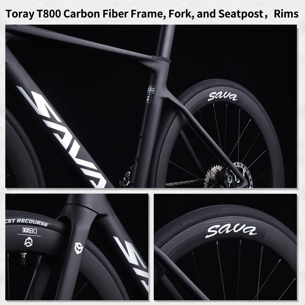 SAVA A7L Carbon Fiber Road Bike 24 Speed Lightweight Men's Race Bike SENSAH 7120 Kit 8.9kg Front Disc Brake Aluminum Wheels