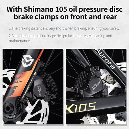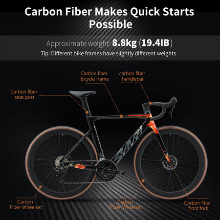 The SAVA AK105 Carbon Fiber Road Bike presents a formidable option for competitive and enthusiast riders alike. Engineered with a sturdy carbon fiber frame, this 700C unisex racing machine is UCI proven for its performance. It features a responsive 24-speed 105 R7120 groupset and reliable double disc brakes, ensuring precise control and confident stopping power on any course.