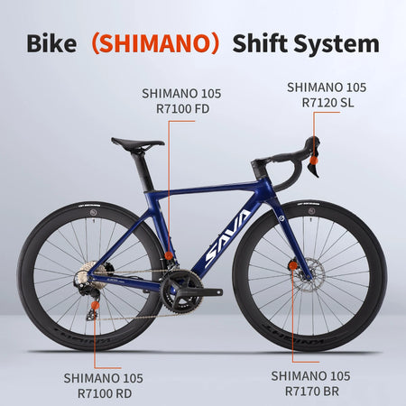 The SAVA AURORA A7L and A7L Pro represent a sophisticated fusion of engineering and design in the realm of adult racing bikes. Both iterations boast a lightweight yet robust carbon fiber frame meticulously crafted to optimize aerodynamics and power transfer. Equipped with the Shimano 105 R7100 groupset, these bikes offer precise and reliable 24-speed mechanical shifting, ensuring seamless transitions across diverse terrains. Disc brakes provide consistent and dependable stopping power.